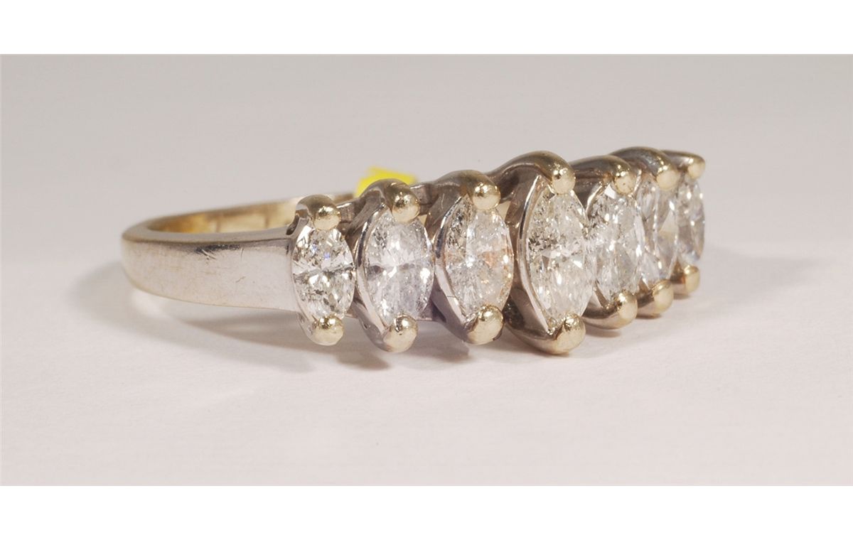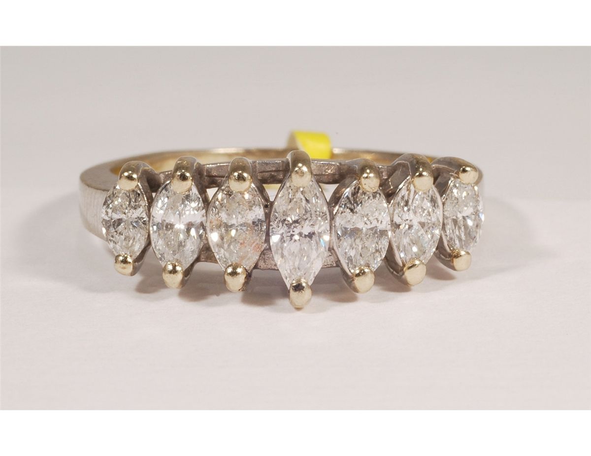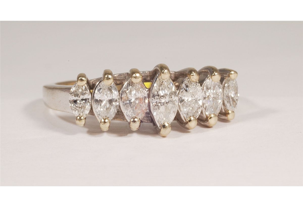 14K White Gold, 4.30 grams 7 Marquetry Diamond ring 2.00 ct