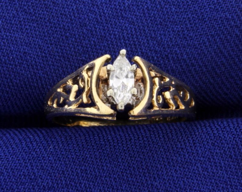 14K yellow gold, there is a .2ct marquise cut diamond that is SI clarity, G color, great cut! Size 6 2.6g