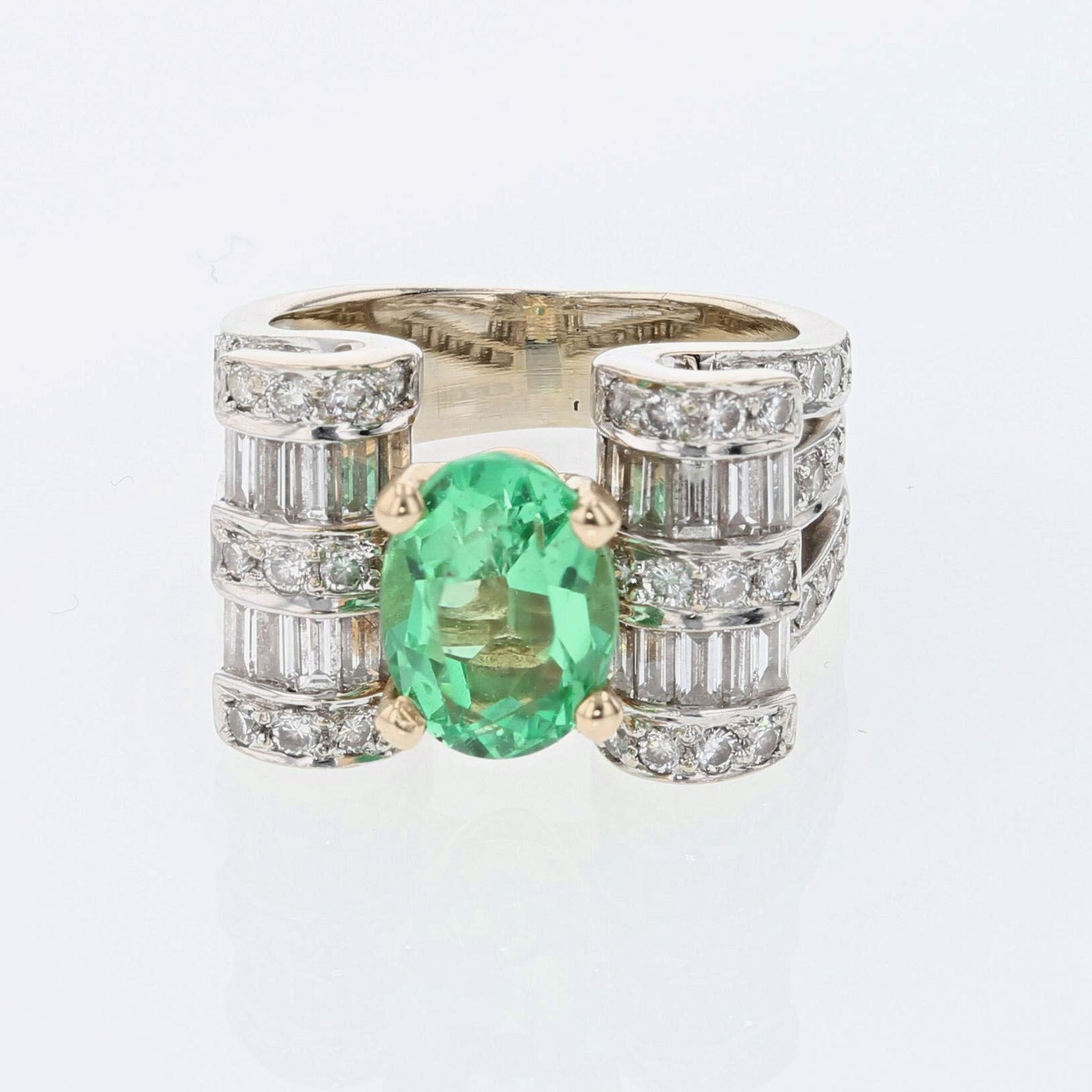 14K White Gold Ring / Natural Emerald 2ct / Diamonds 1ct #AV9432975