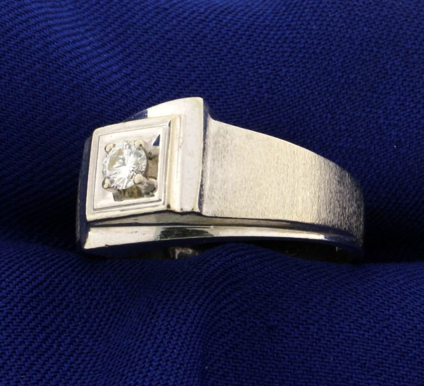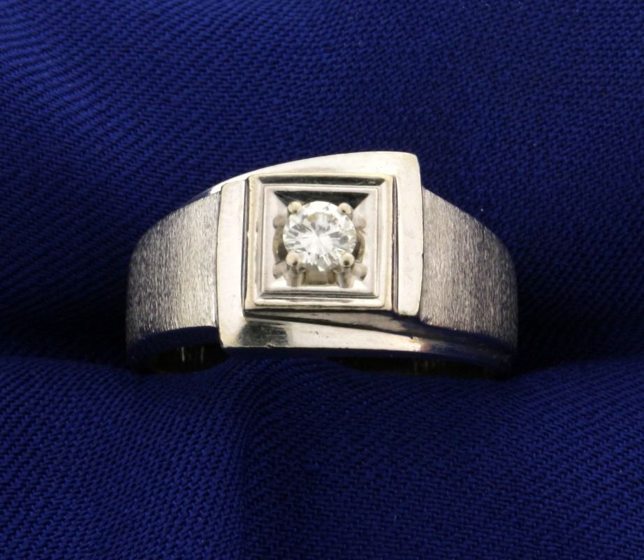 In 14k white gold with a very high quality .2ct diamond with G color and VS clarity. Size 9 1/2. 7.0g.
