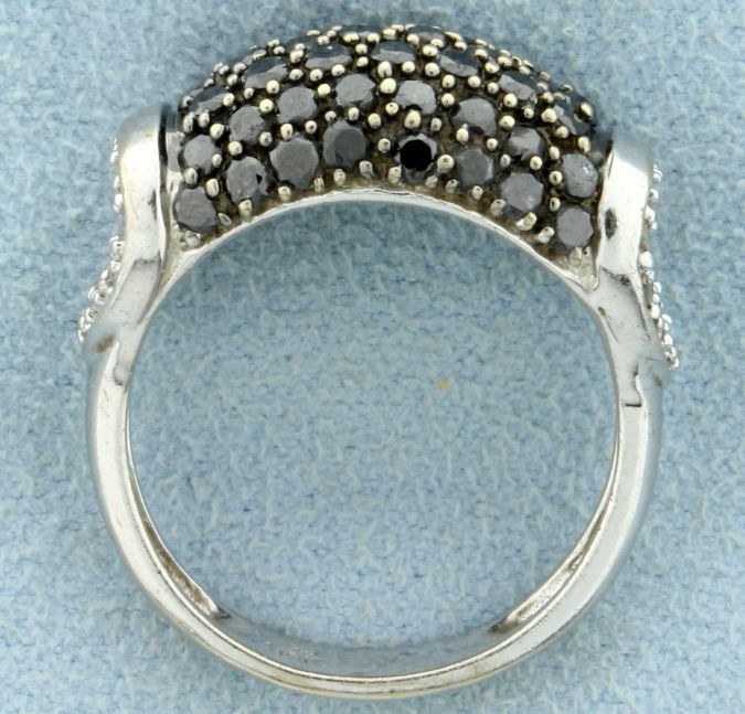 In 10K white gold, it contains 1.6ct TW of black diamonds and .4ct TW of traditional diamonds. Size 8 5.2g