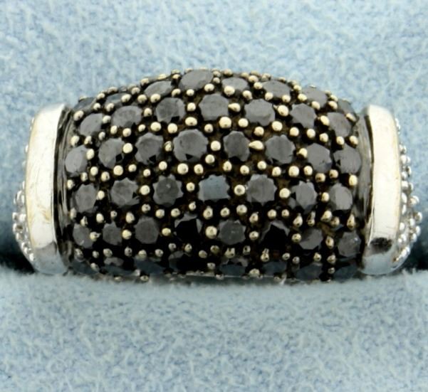 In 10K white gold, it contains 1.6ct TW of black diamonds and .4ct TW of traditional diamonds. Size 8 5.2g