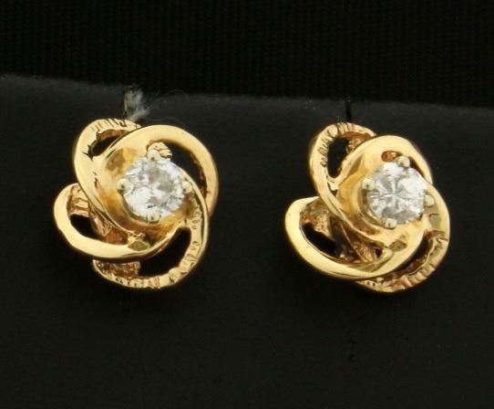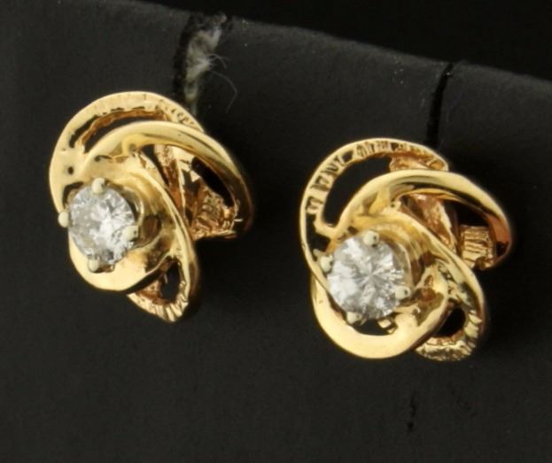 In 14k yellow gold. Contains two high quality.1ct diamonds, H color/I clarity . 5/16 inches wide with friction backs. 2.1g.