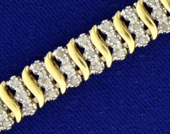 In 10k yellow gold. Containing 114 high quality diamonds, I color/I clarity. 7" long, with safety clasp. 11.8g.