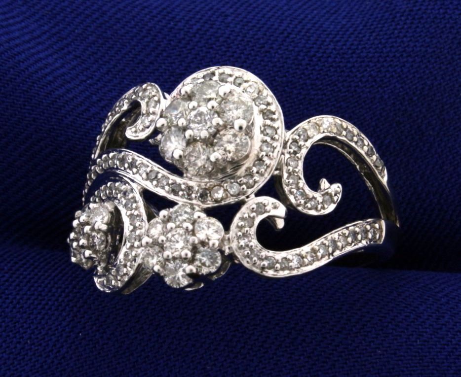 In 14k white gold, containing 2cts of High Quality Round Brilliant Diamonds ranging from .06 to .01cts each. Diamonds are SI clarity/H color. Size 10. 5.3g.