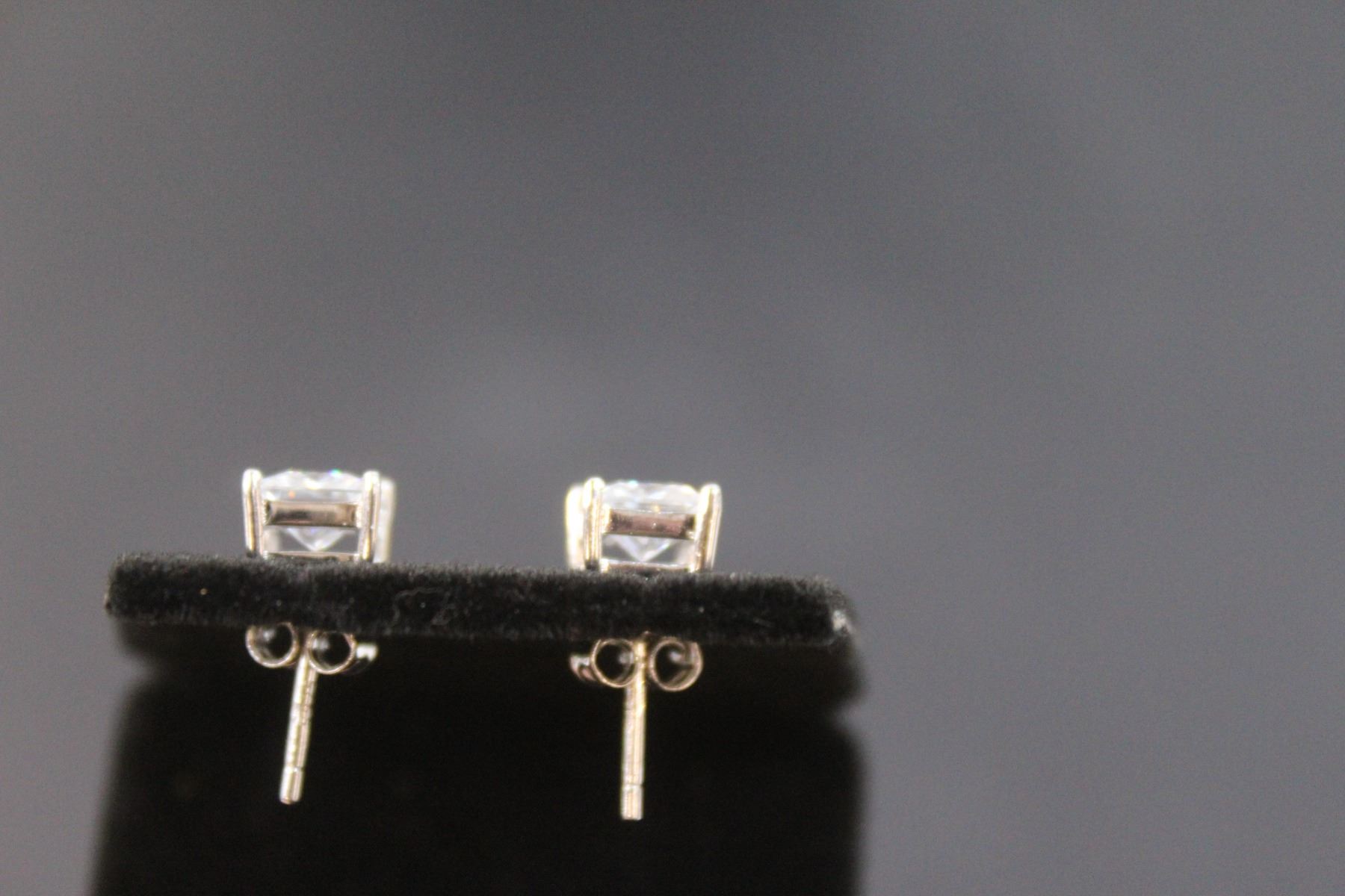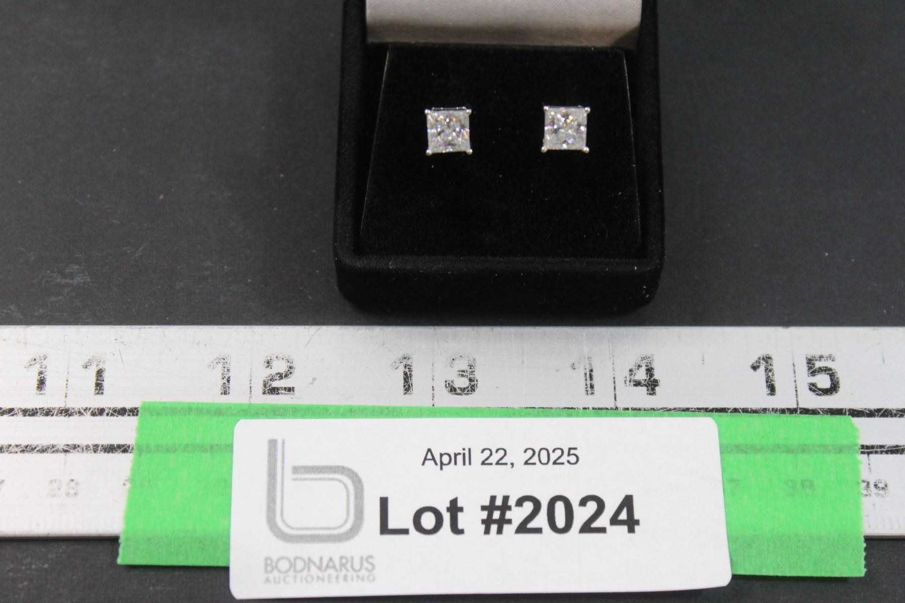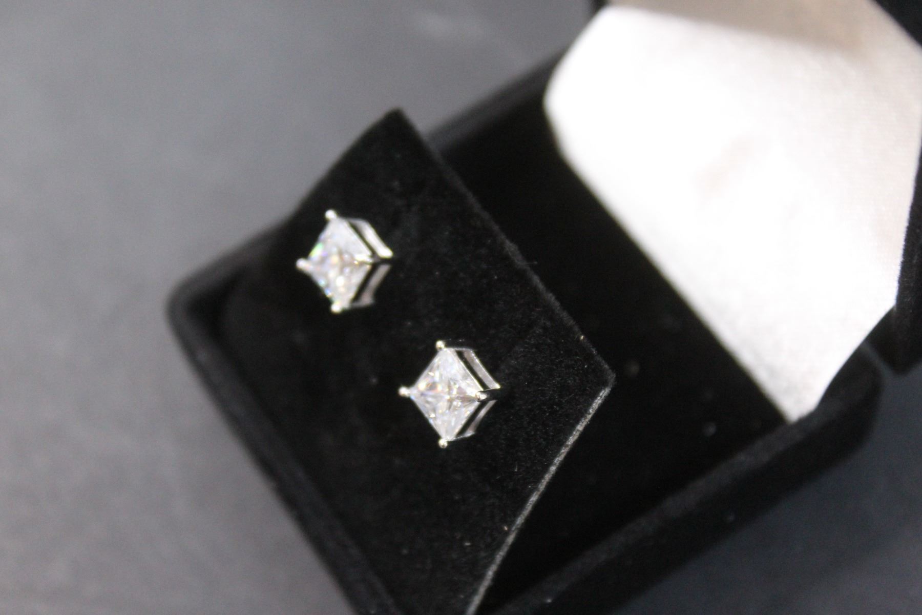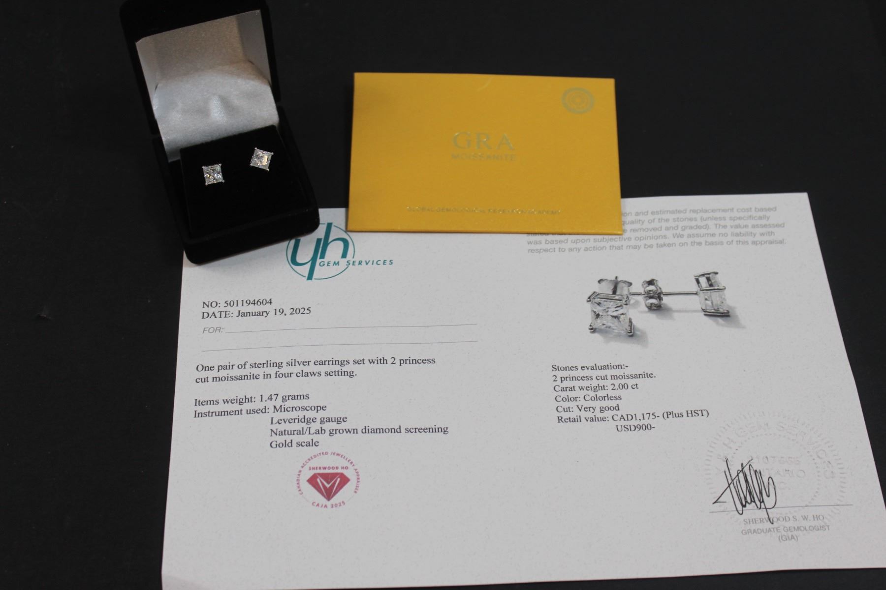 ^ 2ct. TW GRA Certified Princess Cut Moissanite Stones VVS D Color Set in Four Claw Basket Set in sterling Silver Earrings