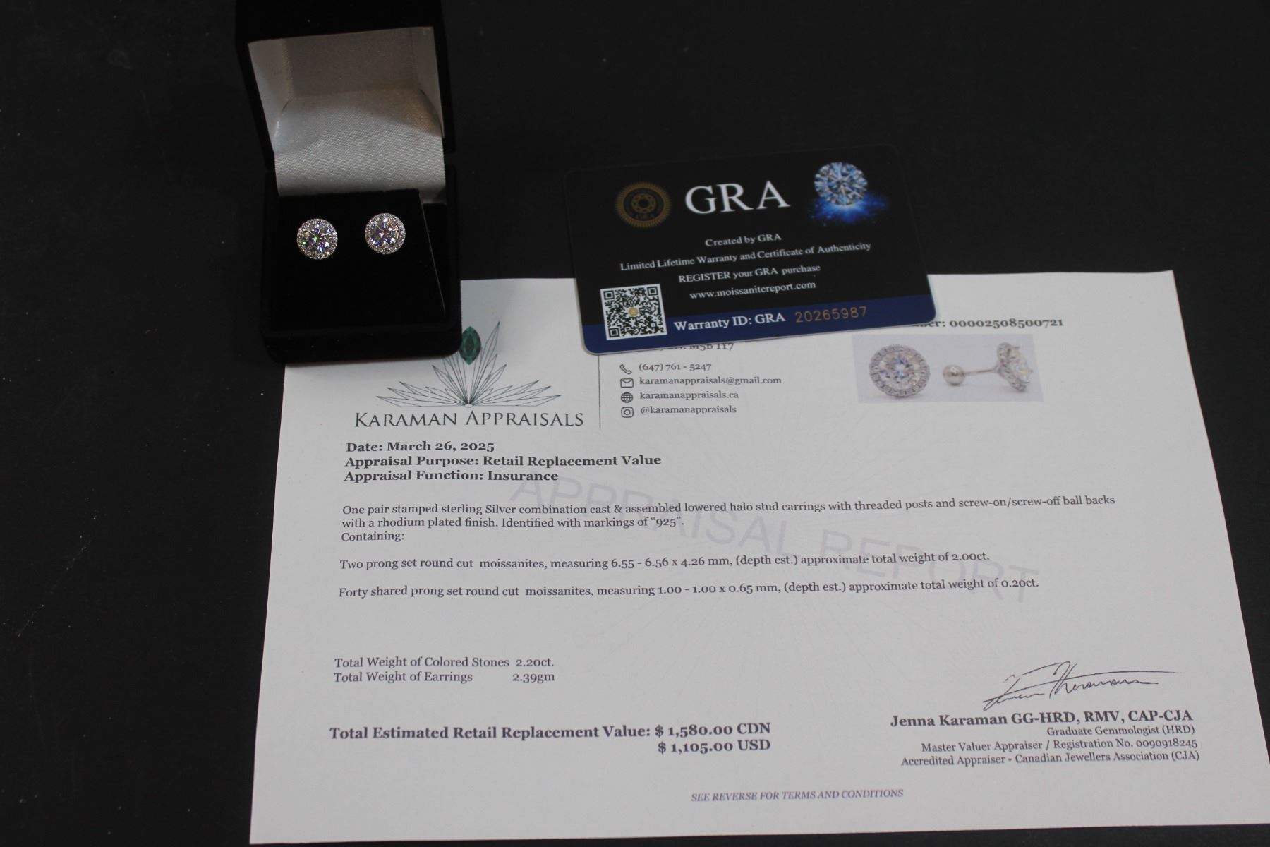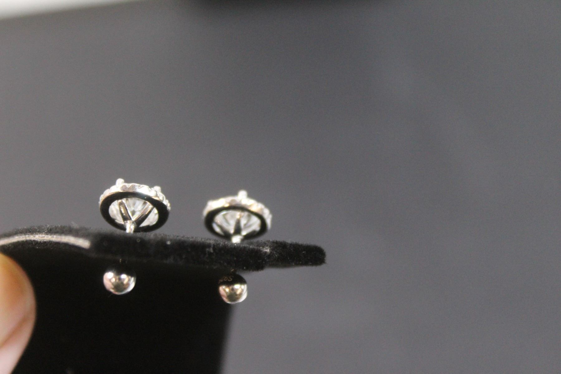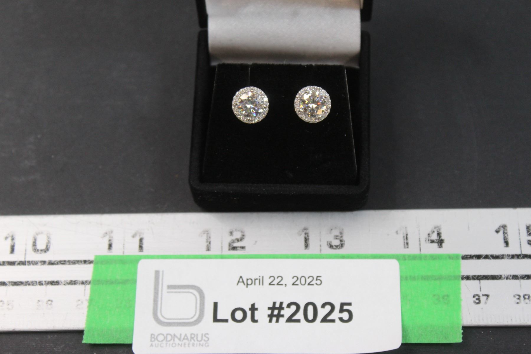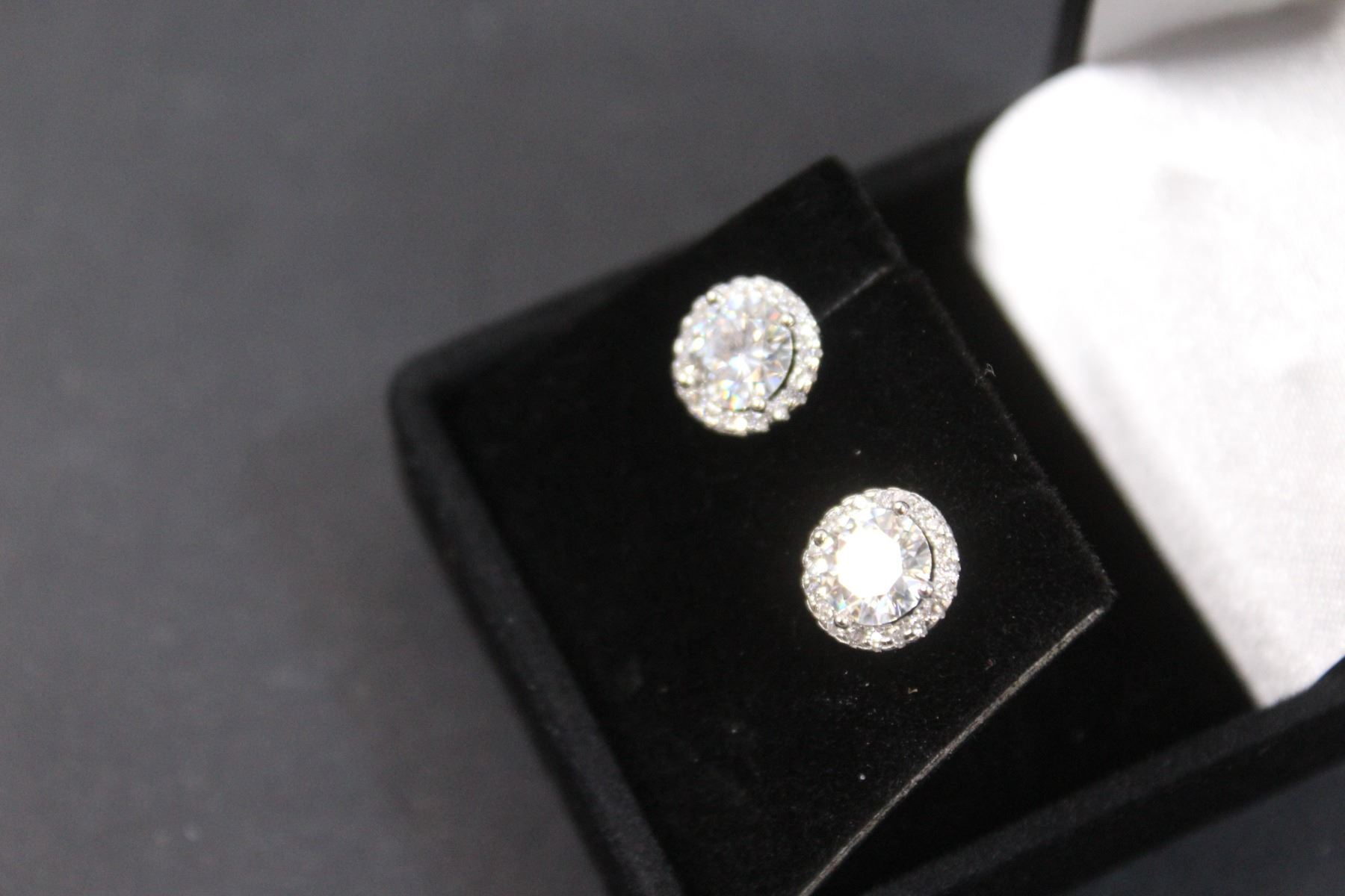 ^ 2ct. TW Gra Certified Round Brilliant Cut Moissanite Stones VVS D Color Set in Center of Round Halo w/(40) Round Brilliant Cut Cubic Zirconia Set in Sterling Silver Earrings