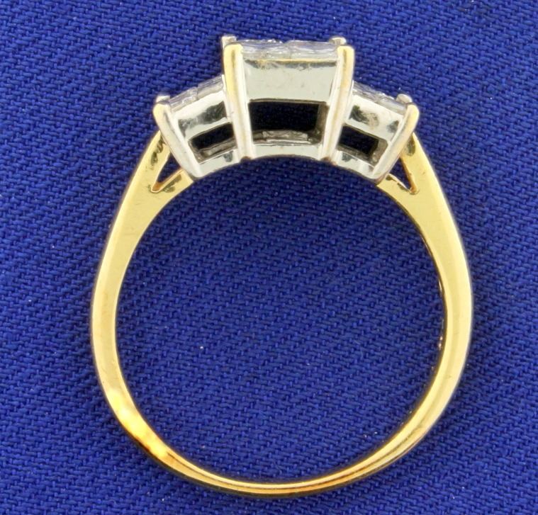 In 14k yellow and white gold. Contains six high quality .2ct and twelve .07ct princess cut diamonds. SI clarity/G color. Diamonds are invisible set to look like 3 huge diamonds. Size 8 1/2. 5.1g.