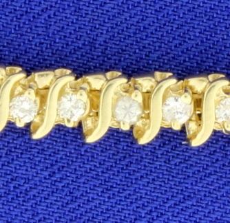 In 14K yellow gold there are 2cts total weight of high quality SI clarity/H color diamonds. The bracelet is 7 inches long. 13.5g