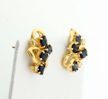 In 14K yellow gold they are 5/8 inch long and contain eight oval sapphires that are a total weight of 2cts. Also they contain four .02ct diamonds and these earrings come with friction backs. 2.9g