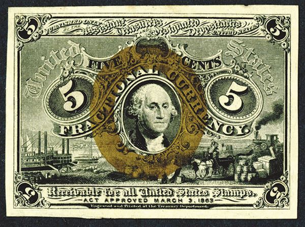 Fractional Currency. Fr. 1234 With surcharge 18-63 S. PMG Choice Uncirculated 63; Fr. 1244 Without surcharge on back. PMG Uncirculated 62 foreign substance noted. 2 pieces.