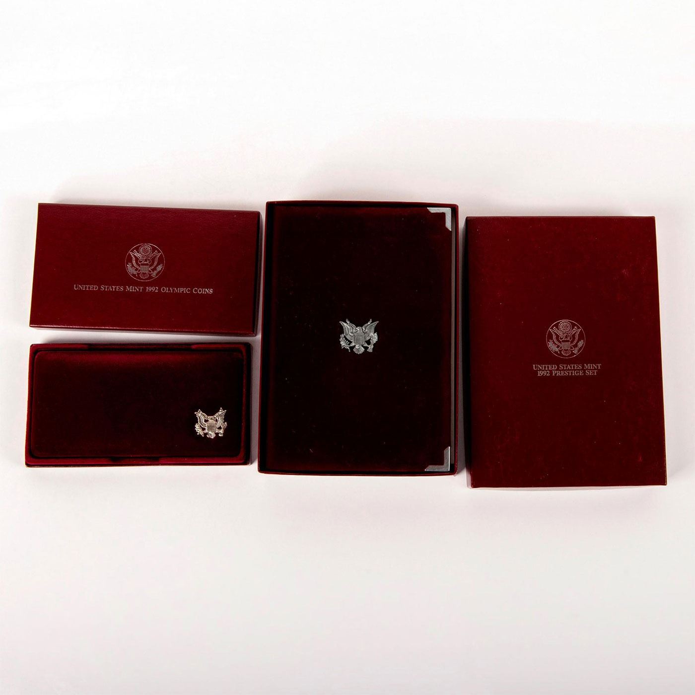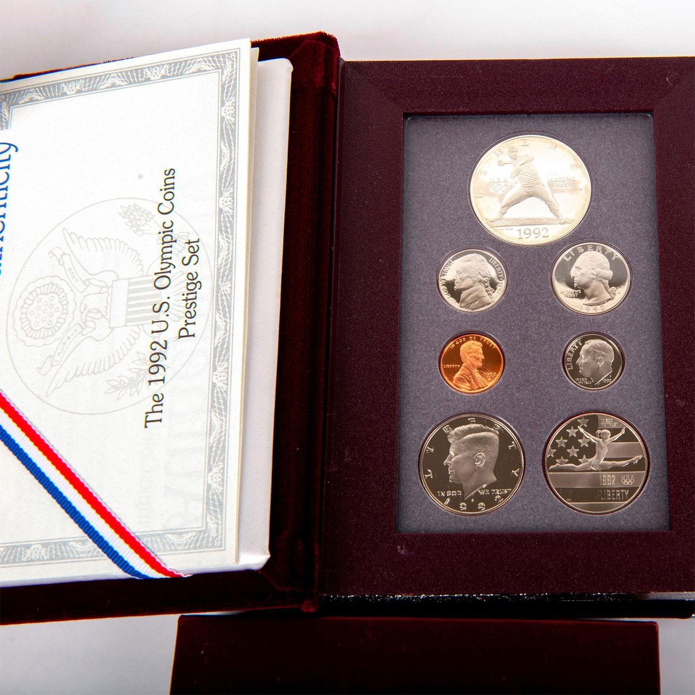 These coins are specially minted to commemorate the games of the 25th Olympiad, and to help support the United States Olympic movement. Come in original boxes. Includes Certificate of Authenticities. Good condition. Prestige Set includes, one Olympic silver dollar coin, one Olympic clad half dollar coin, one Kennedy half dollar coin, one standard quarter dollar coin, one standard ten-cent coin, one standard five-cent coin and standard one-cent coin. Two-Coin Proof Set includes, one Olympic silver dollar coin and one Olympic clad half dollar coin. #Numismatists #coin #currency #Olympic #BarcelonaOlympic #1992Olympic