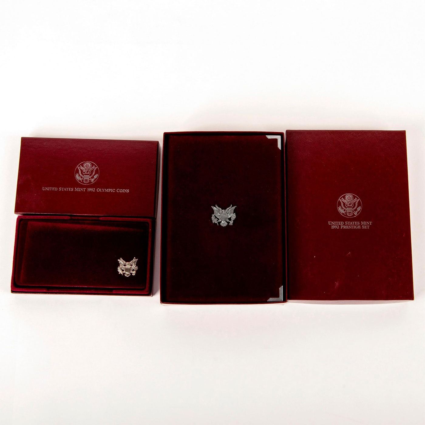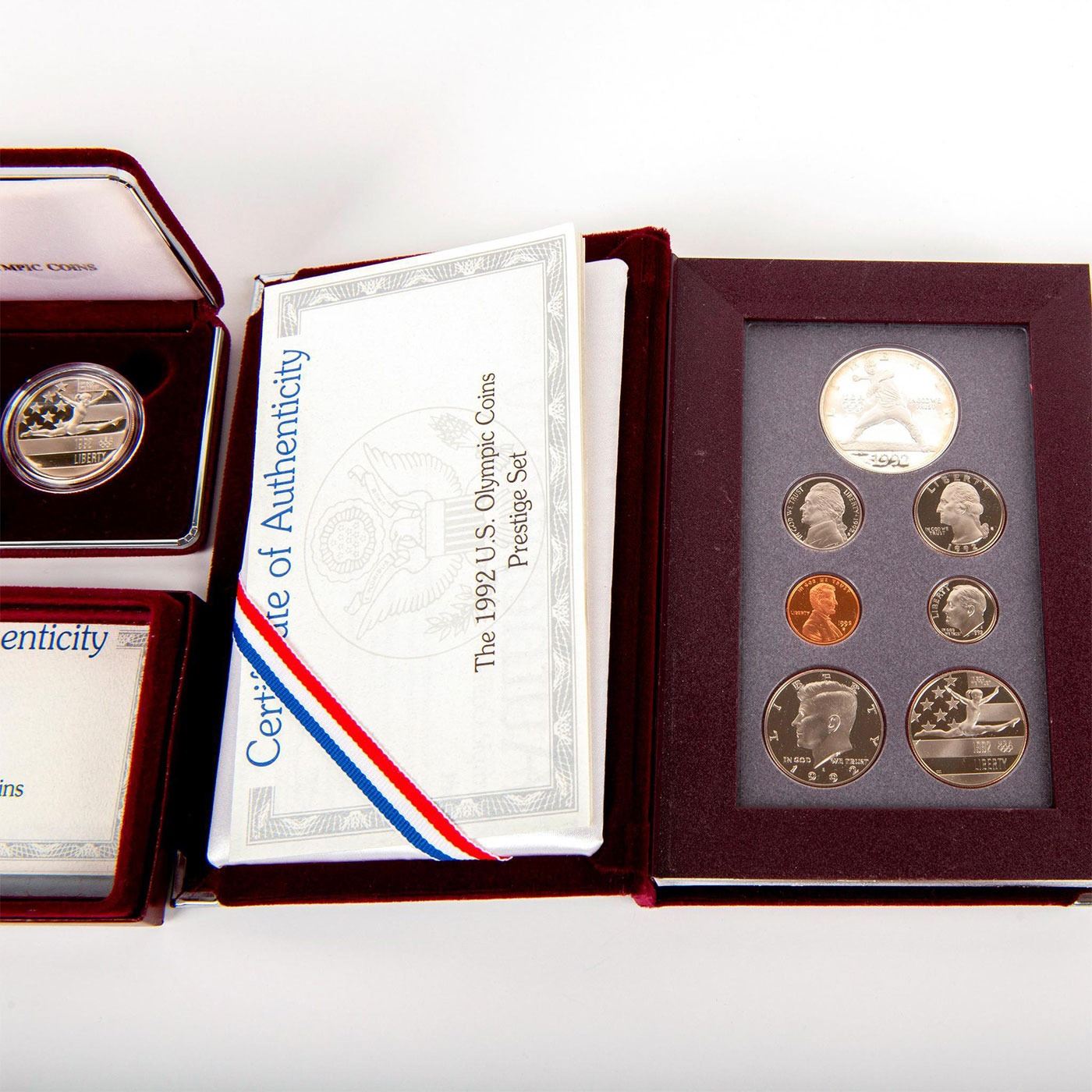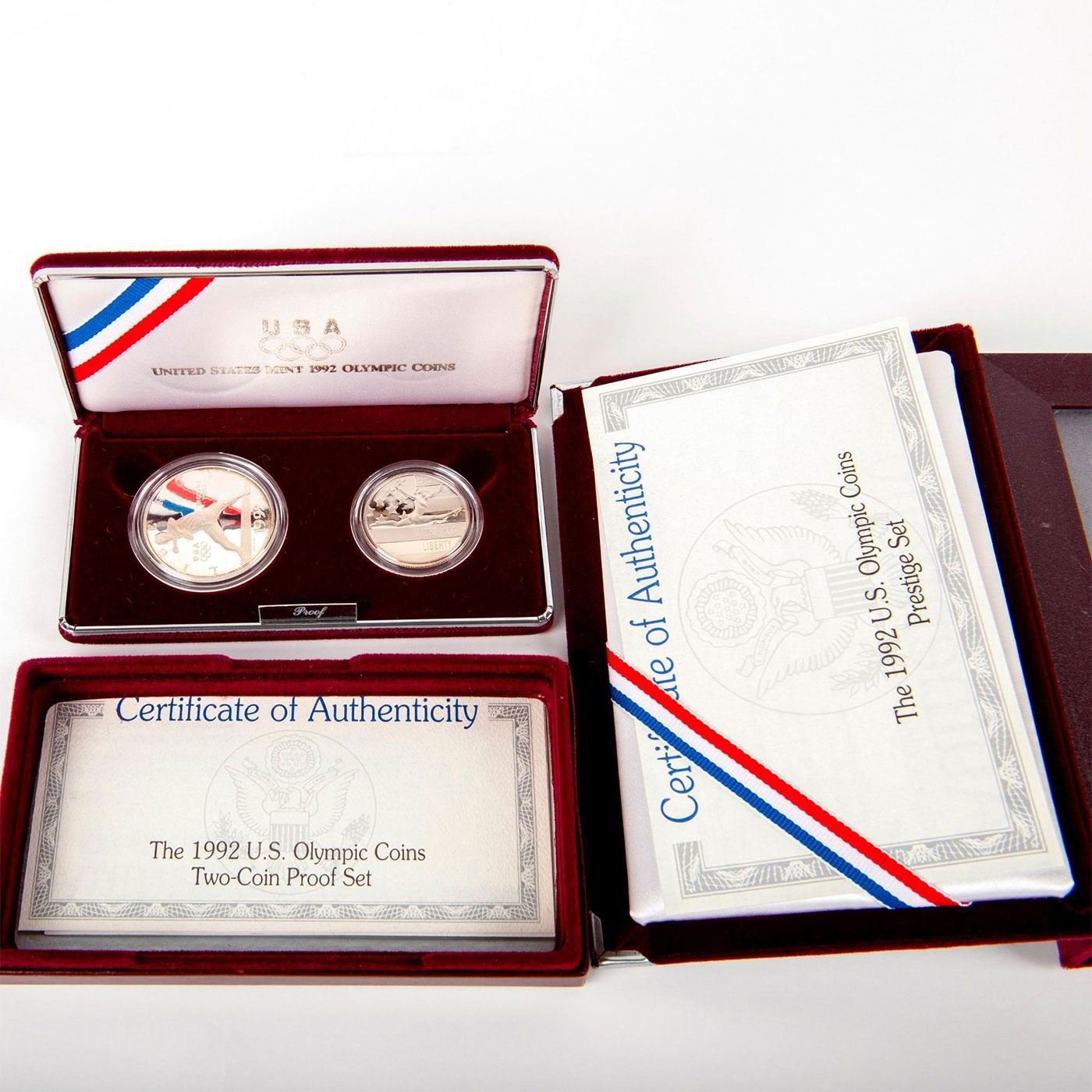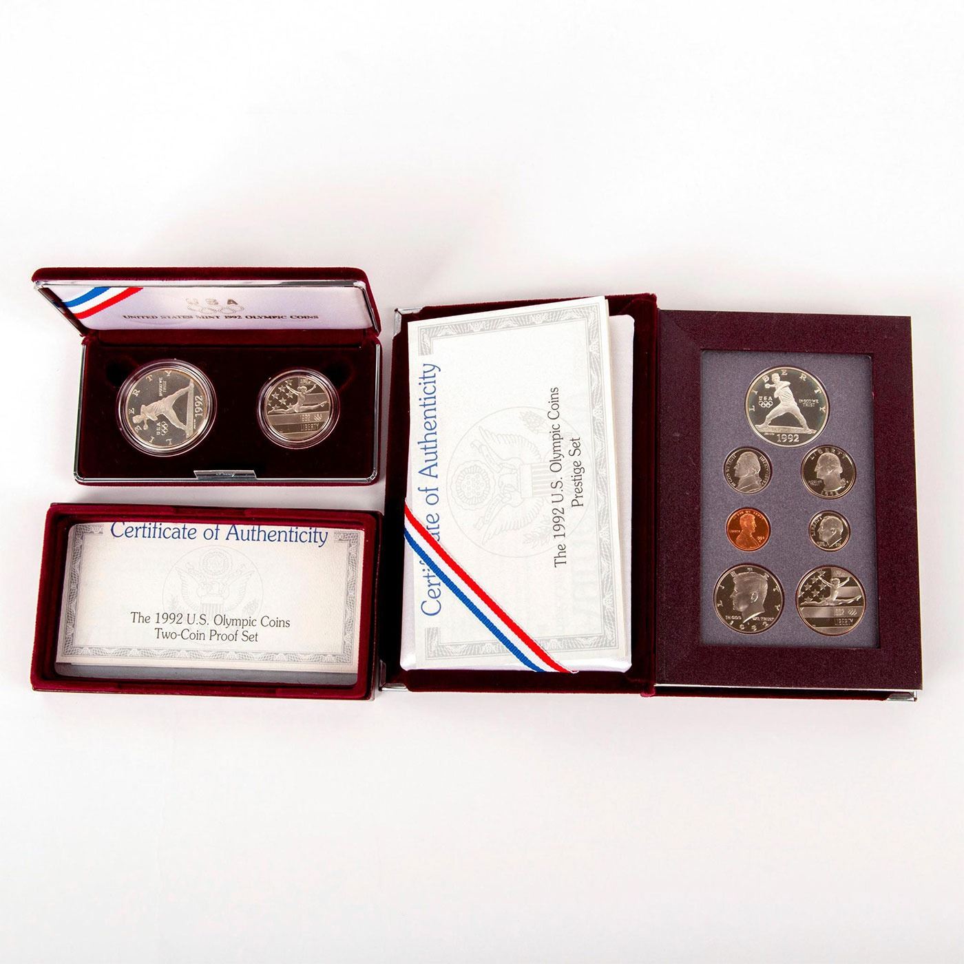 These coins are specially minted to commemorate the games of the 25th Olympiad, and to help support the United States Olympic movement. Come in original boxes. Includes Certificate of Authenticities. Good condition. Prestige Set includes, one Olympic silver dollar coin, one Olympic clad half dollar coin, one Kennedy half dollar coin, one standard quarter dollar coin, one standard ten-cent coin, one standard five-cent coin and standard one-cent coin. Two-Coin Proof Set includes, one Olympic silver dollar coin and one Olympic clad half dollar coin. #Numismatists #coin #currency #Olympic #BarcelonaOlympic #1992Olympic