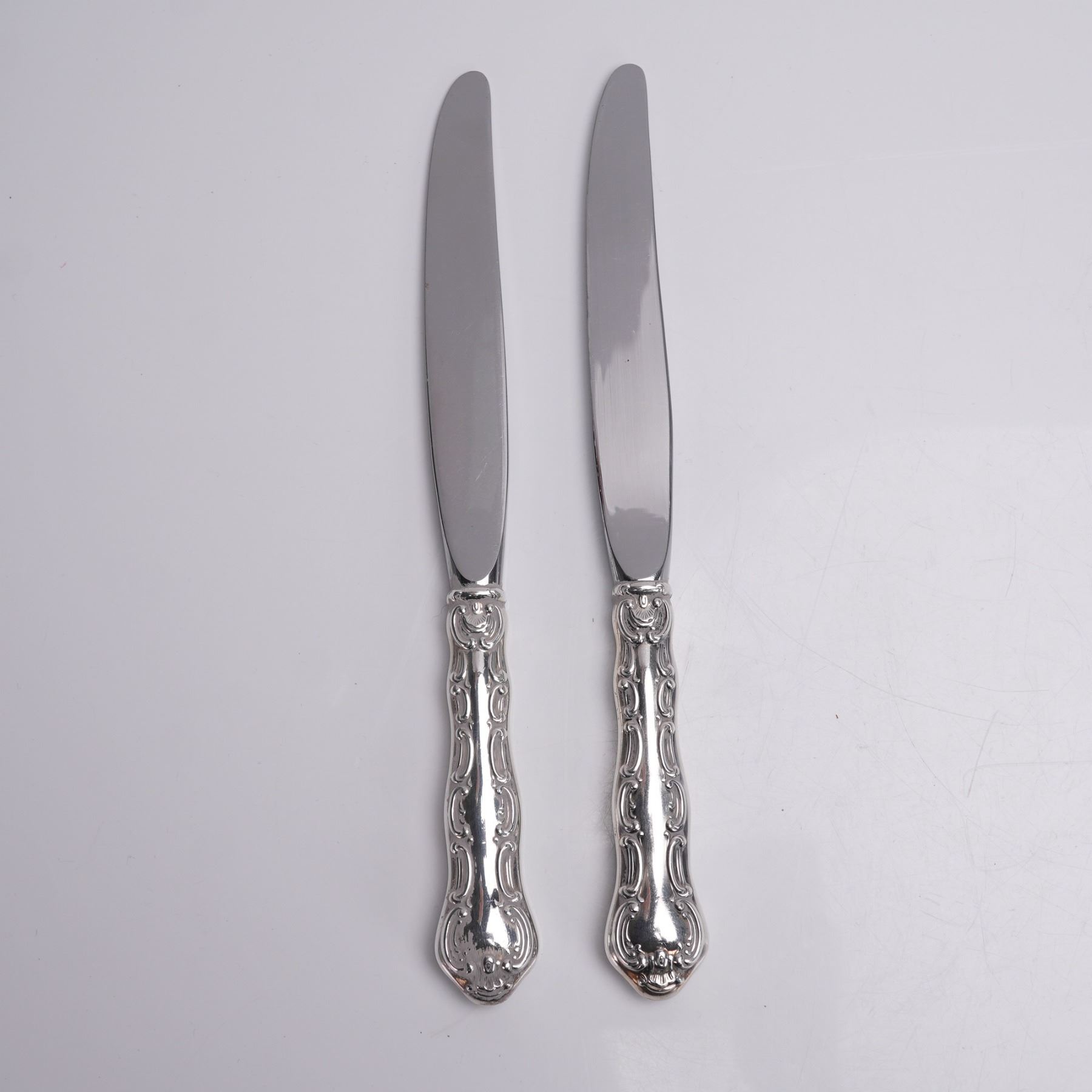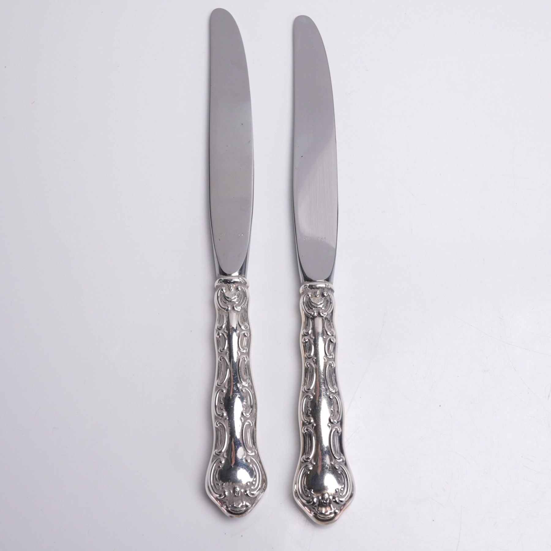 2pc Alvin Sterling Silver Dinner Knives, French Scroll Pattern