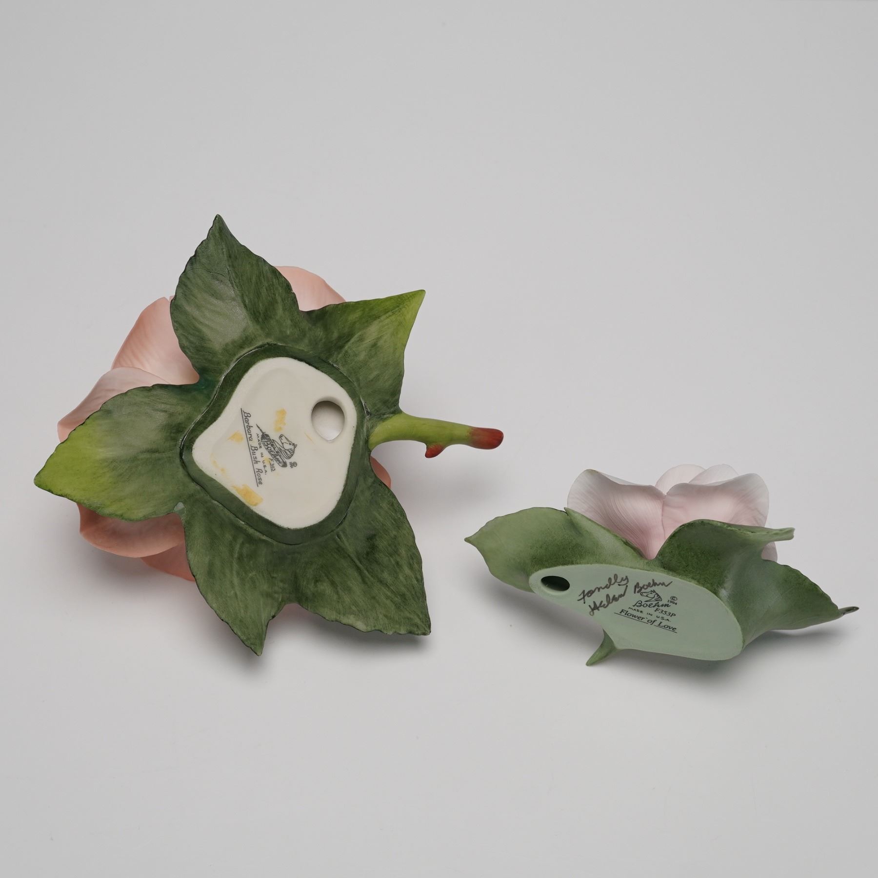 2pc Boehm Porcelain Flower Figurines, Flower of Love & Barbara Bush Rose
