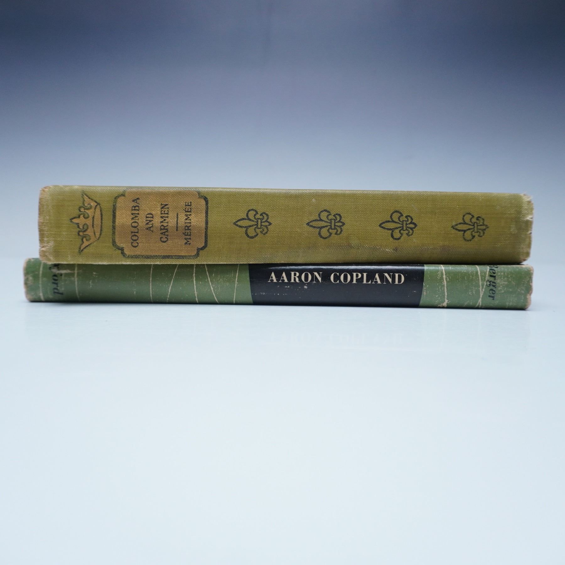 This 2-piece vintage book set includes Aaron Copland by Arthur Berger and Colombia and Carmen by Prosper Merimee. Aaron Copland, published in 1953 by Oxford University Press in New York, explores the life and works of the iconic American composer Aaron Copland. Colombia and Carmen, published in 1901 by D. Appleton & Company, presents two classic French novellas that delve into themes of passion and cultural identity. Both books feature original hardcovers and period-appropriate wear consistent with their age. Dimensions of the set: 5.75"L x 1"W x 9.75"H.