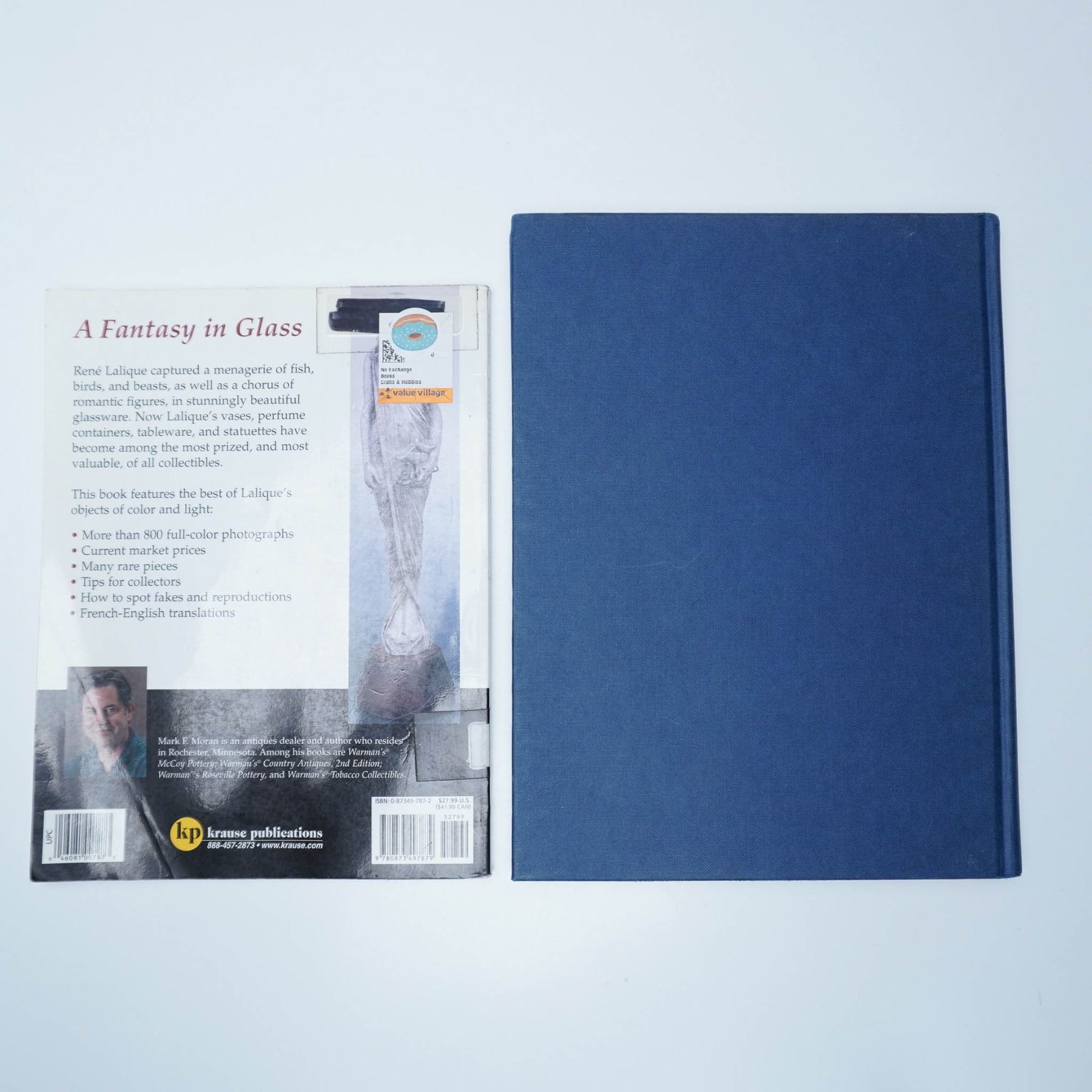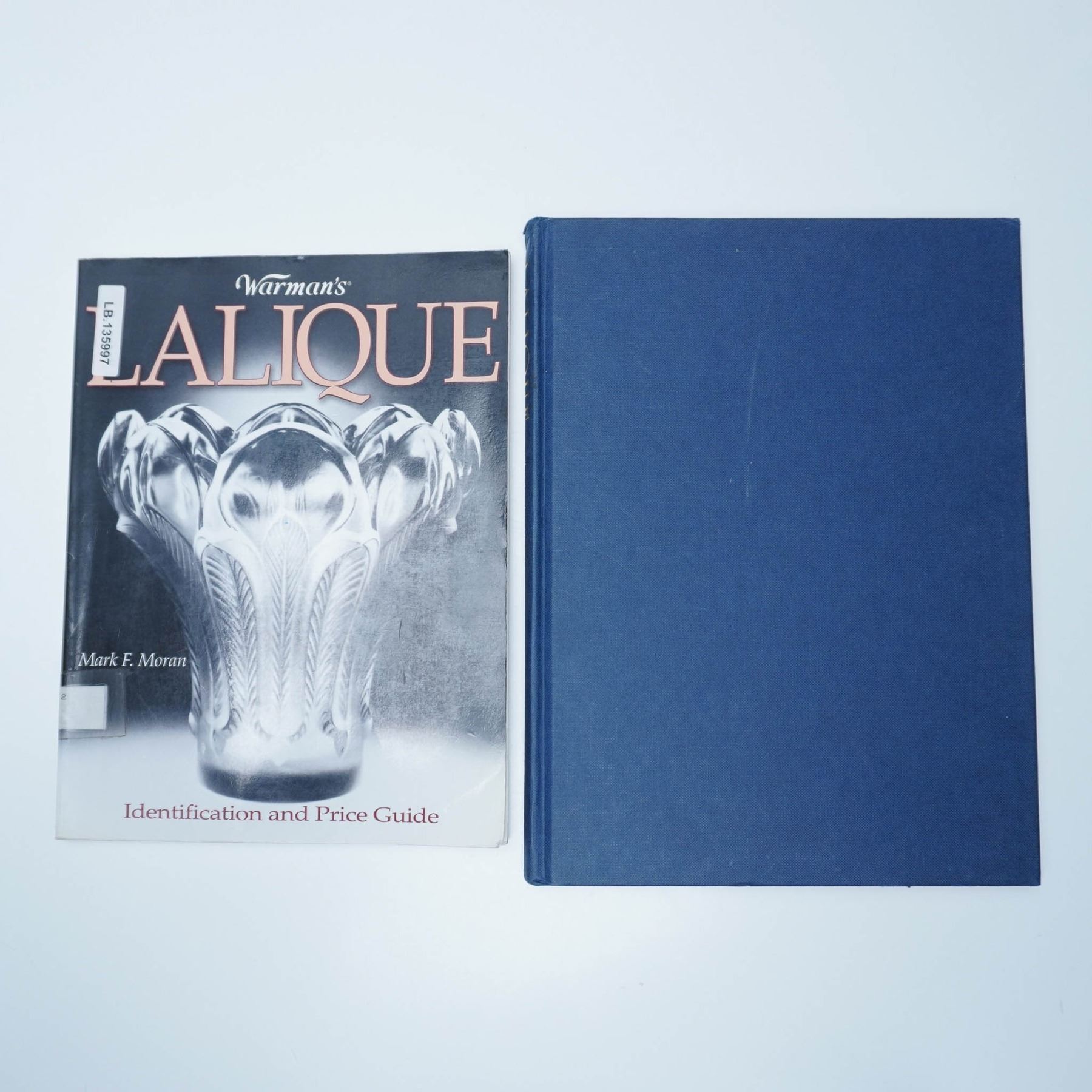 This 2-book set features valuable reference material on Rene Lalique and his iconic glass designs. (ISBN 0-87349-787-2) Included is Warman's Lalique: Identification and Price Guide by Mark F. Moran, providing insights, full-color photographs, and pricing details for Lalique collectors. The second volume is a hardcover book (ISBN 0-517-69095-0) covering additional Lalique history and craftsmanship. A must-have resource for glassware enthusiasts and collectors. Largest book measures 9"L x 0.75"W x 12"H.