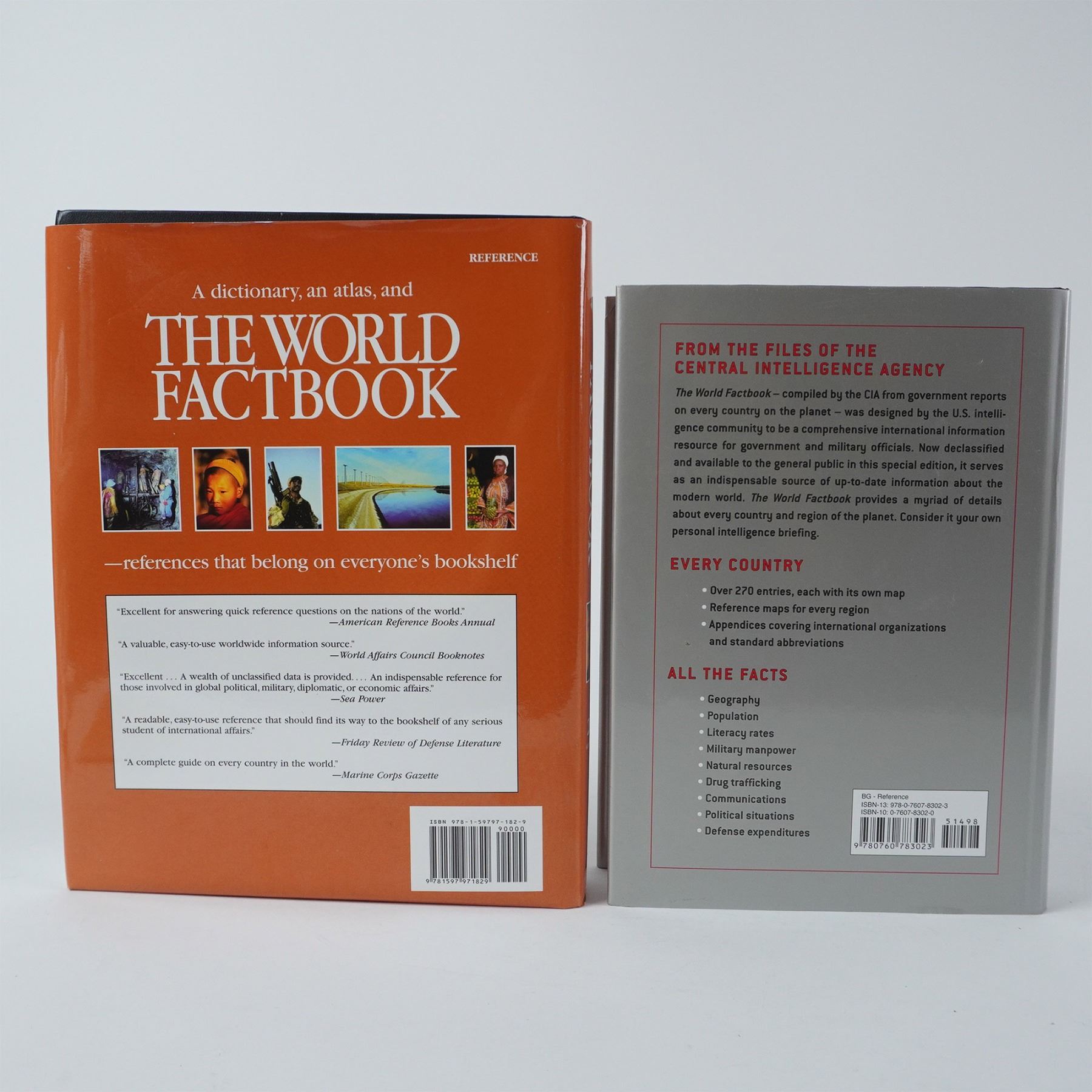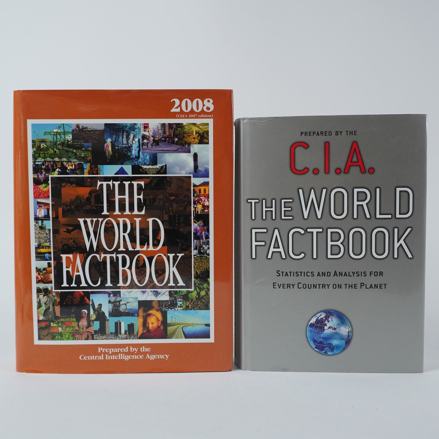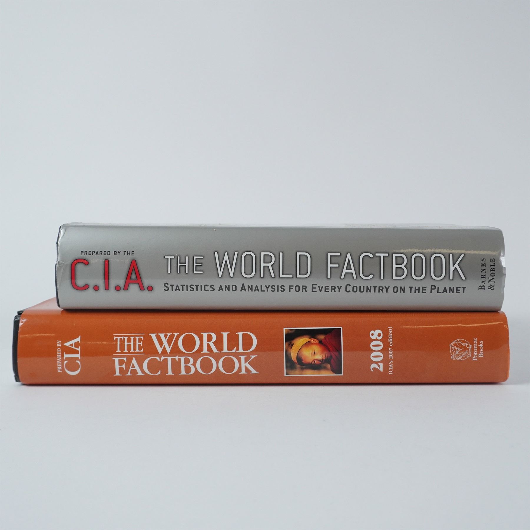 This set includes two editions of The World Factbook prepared by the CIA, providing in-depth statistics, geopolitical insights, and country-by-country analysis. These comprehensive reference books cover demographics, economic conditions, political structures, and military capabilities of nations worldwide. Ideal for researchers, analysts, and global affairs enthusiasts, these volumes offer a detailed snapshot of world affairs from an intelligence perspective. A valuable addition for collectors of government-issued reference materials. Largest book measures 11.25"H.