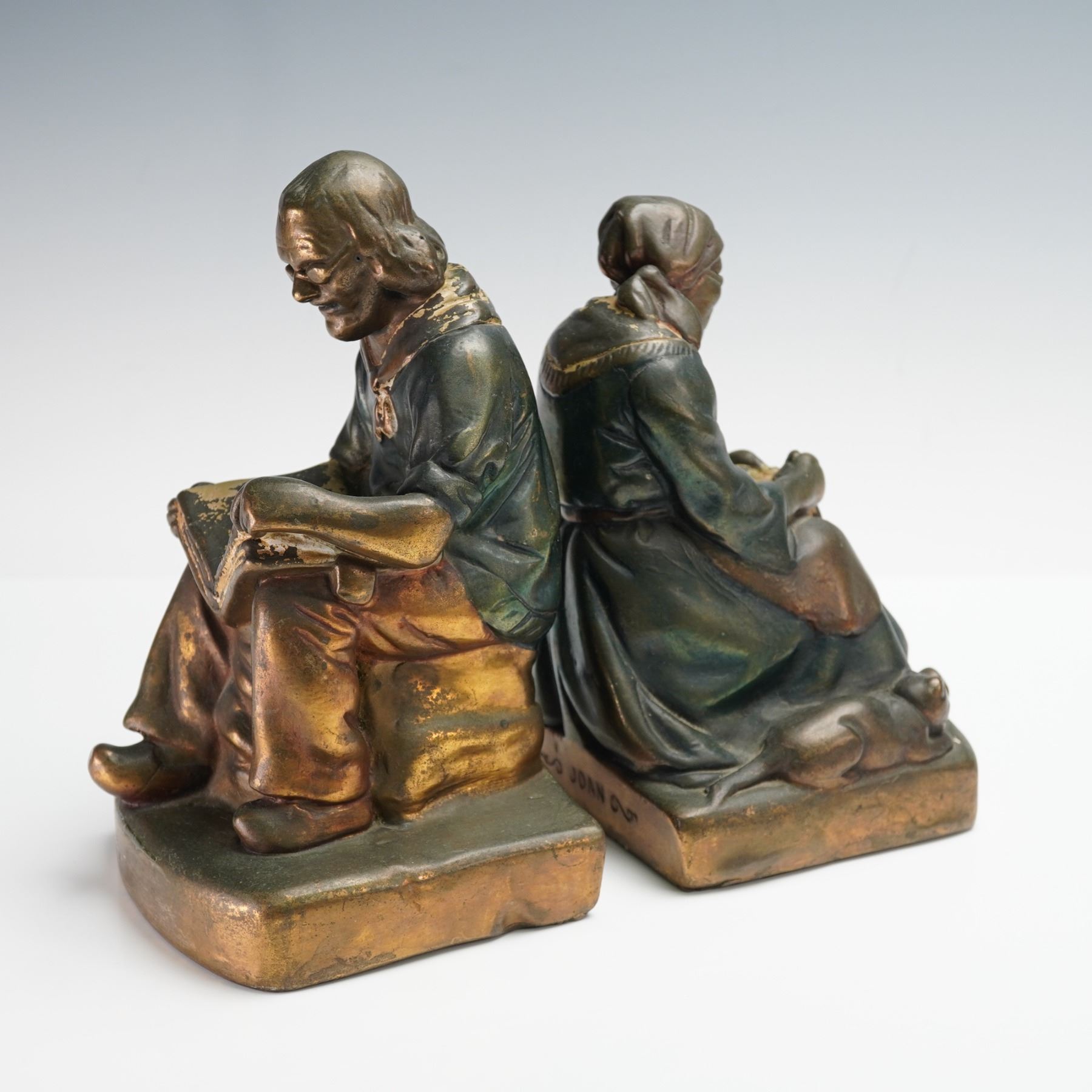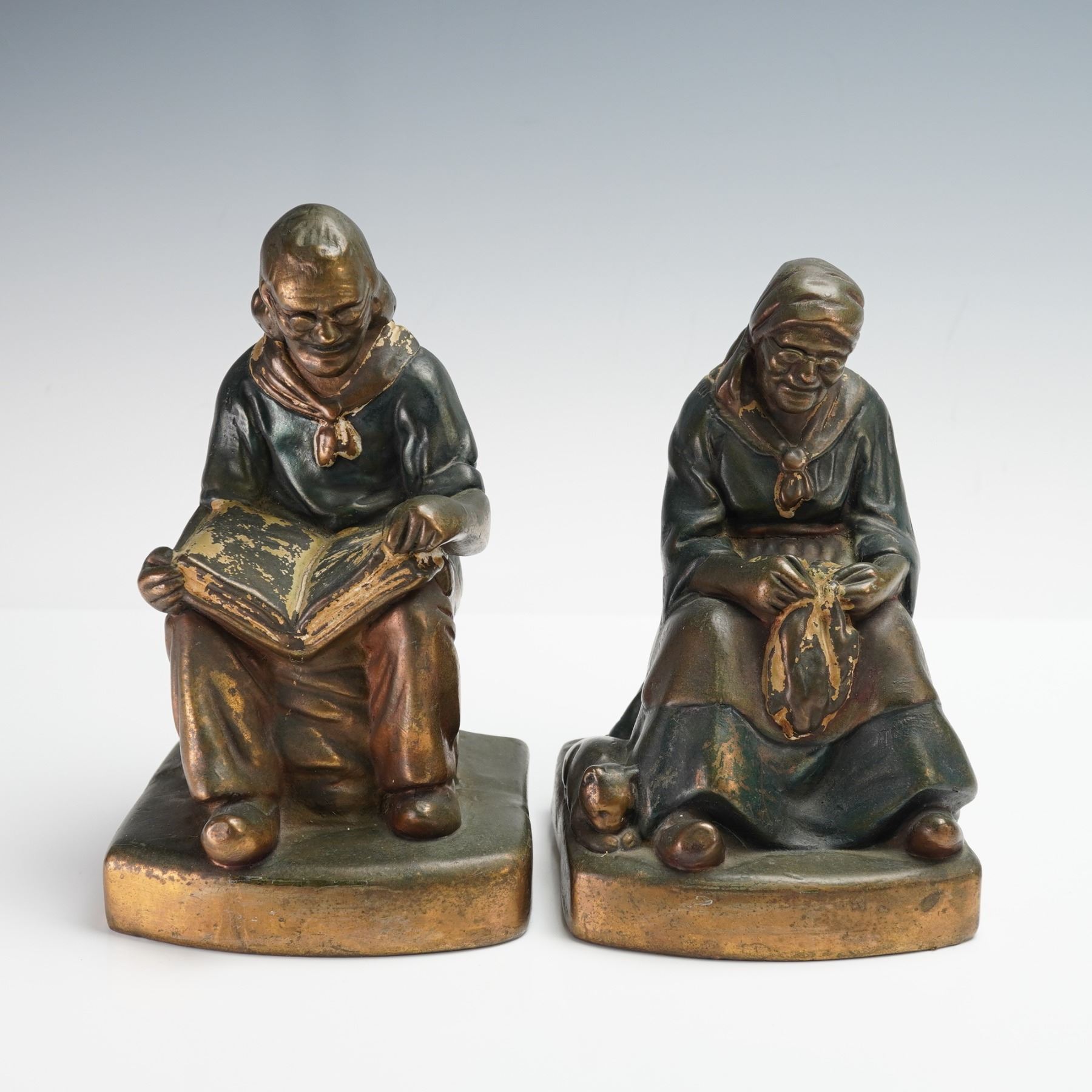 2pc Cast Iron Figurine Bookends, Darby and Joan
