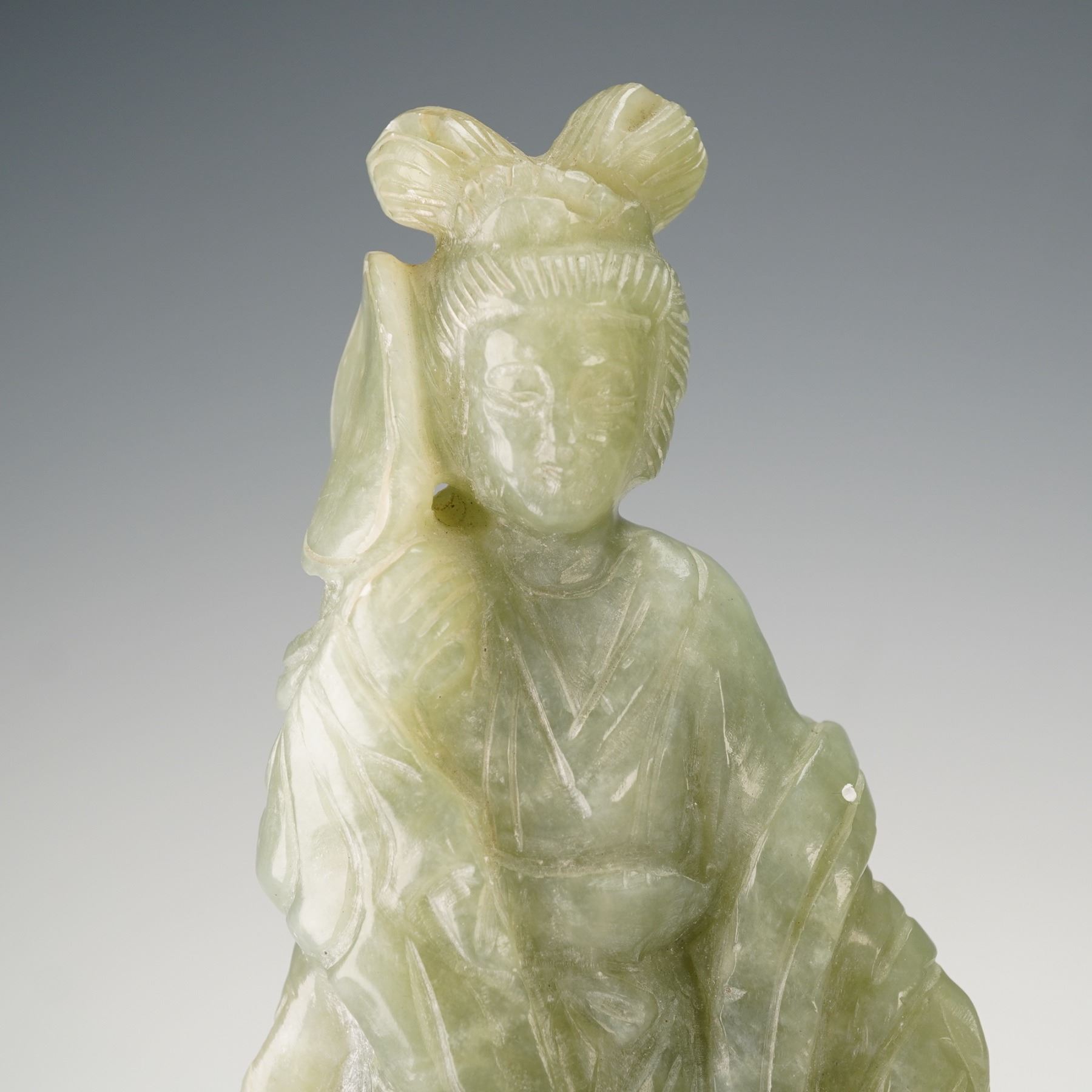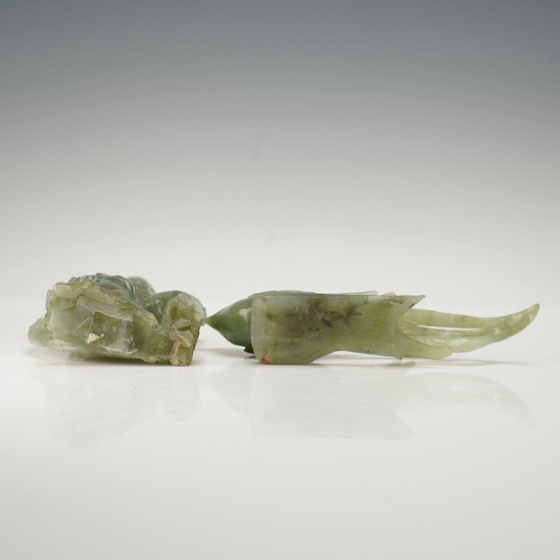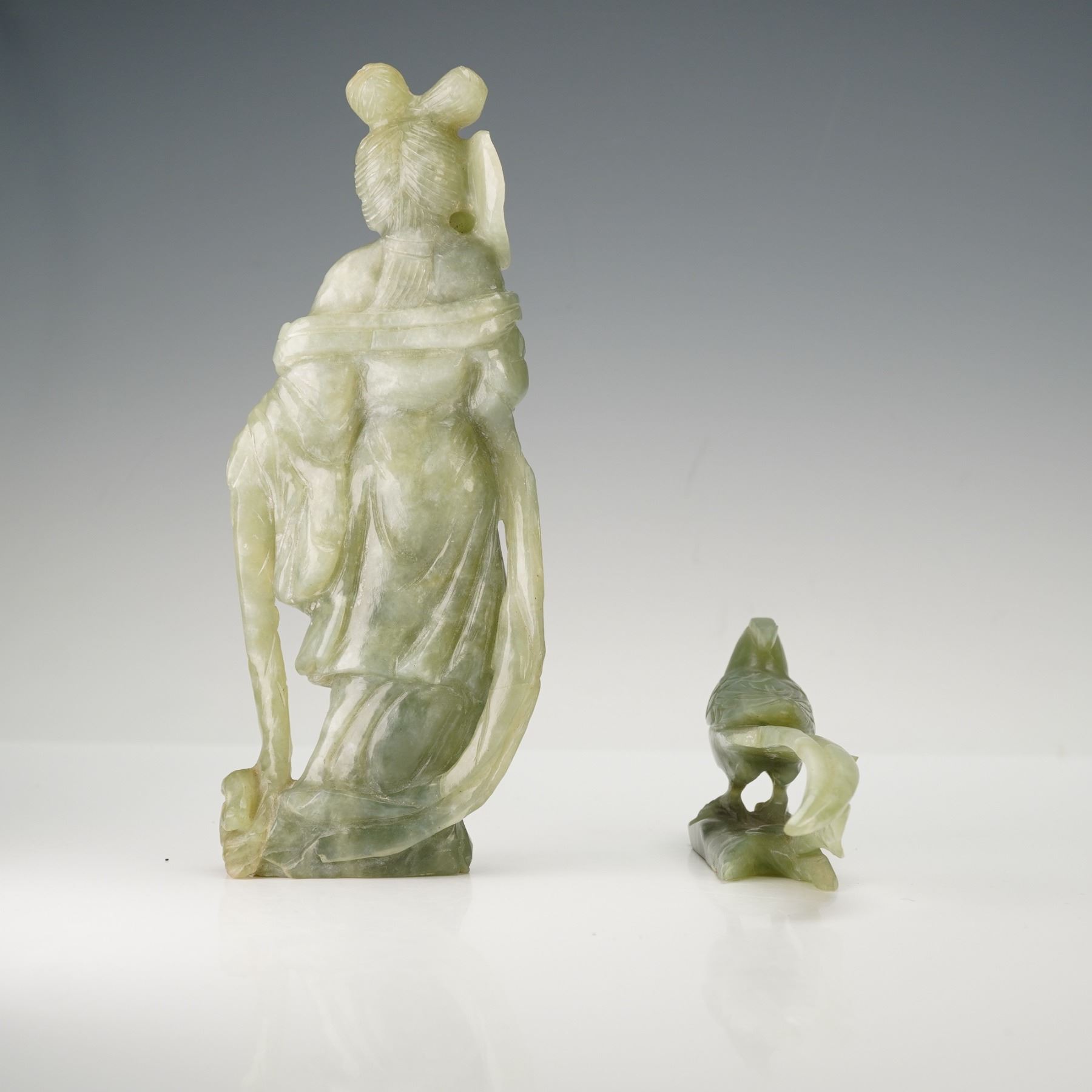 2pc Chinese Carved Jade Lady and Bird Figurines