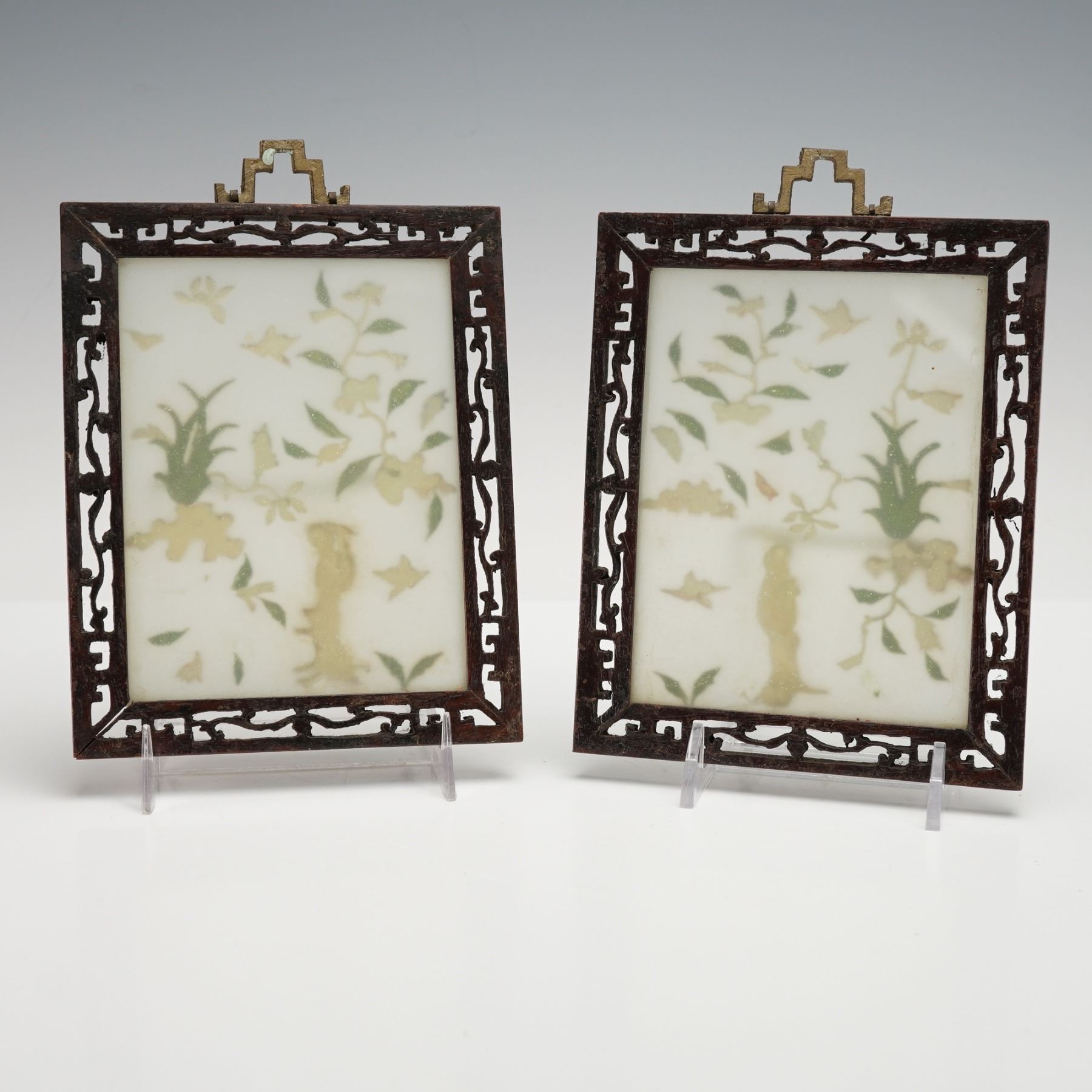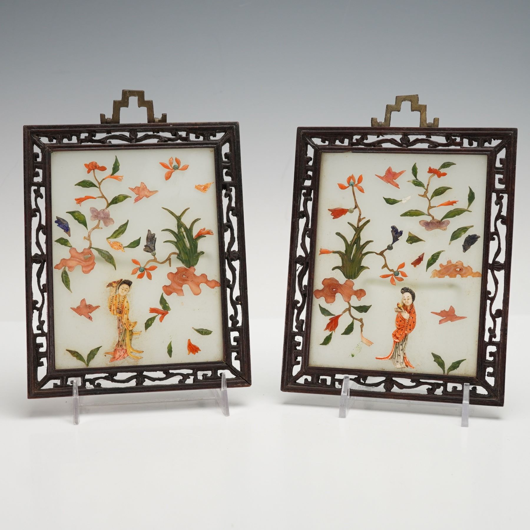 2pc Chinese Hardstone-Inlaid Panels