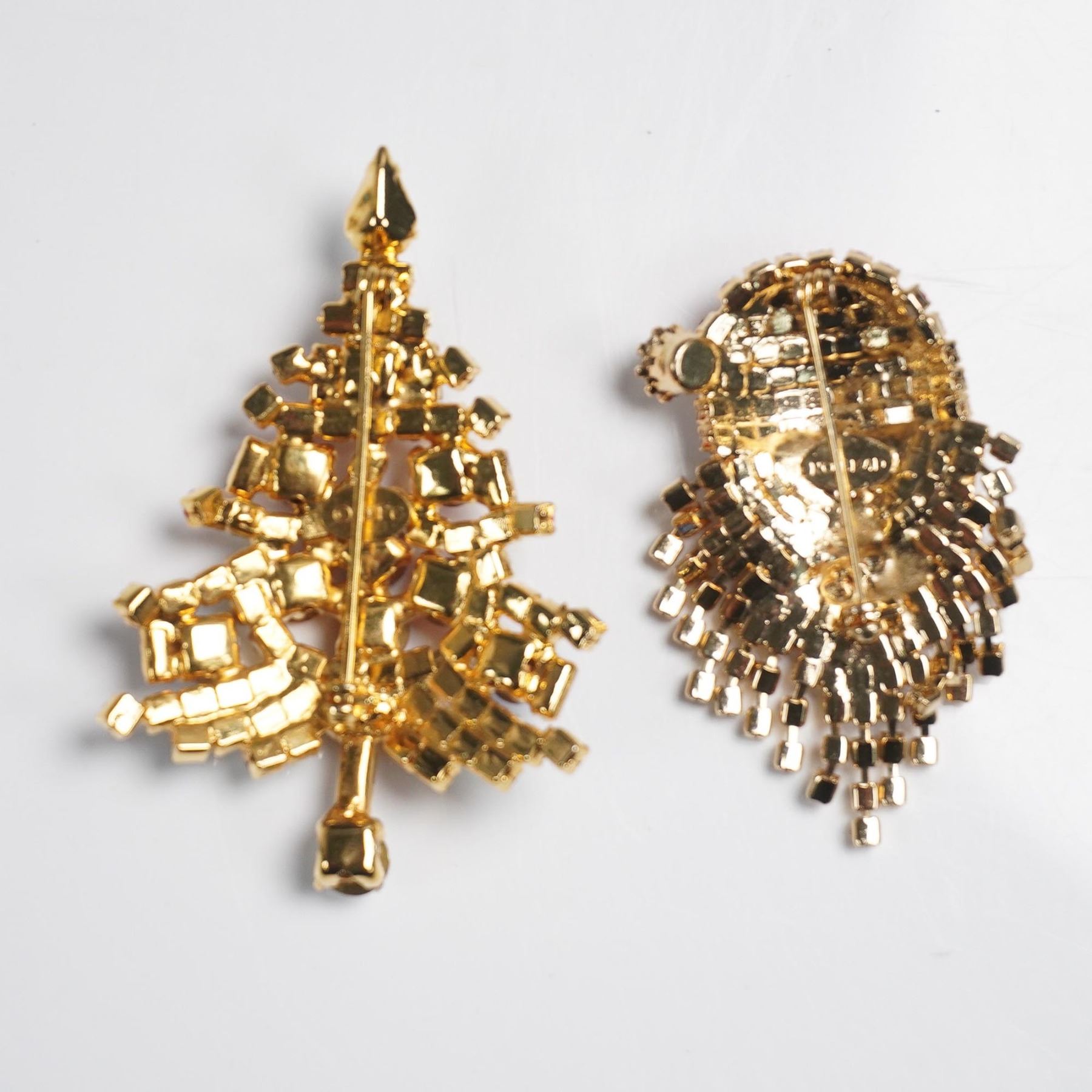 2pc Christmas Rhinestone Pins, Santa and Tree, Signed OTC
