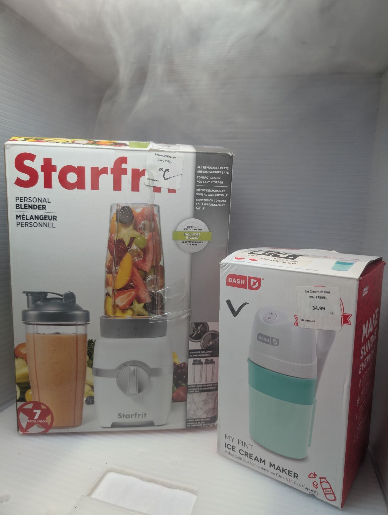 2pc - Dash my pint ice cream maker 1 pint & Starfrit personal blender (tested working in boxes)