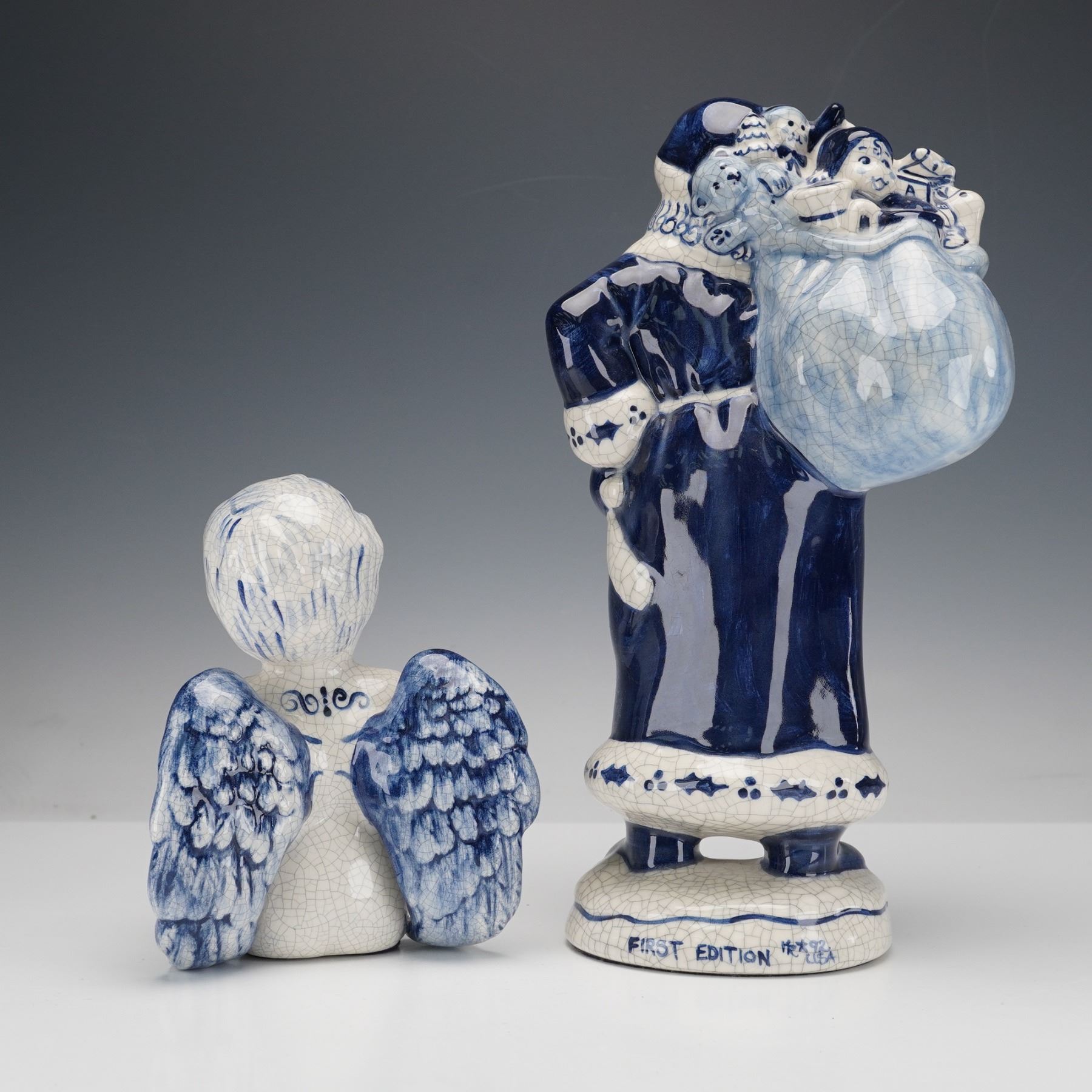 2pc Dedham Pottery Holiday Figurines, Santa Claus & Seated Angel