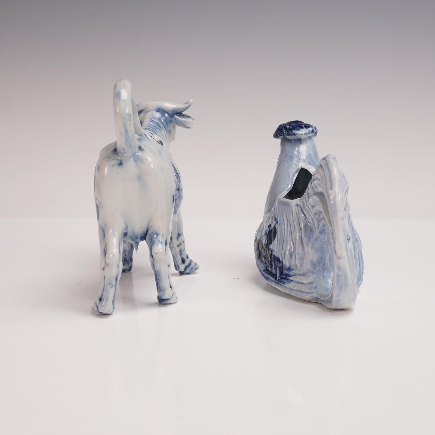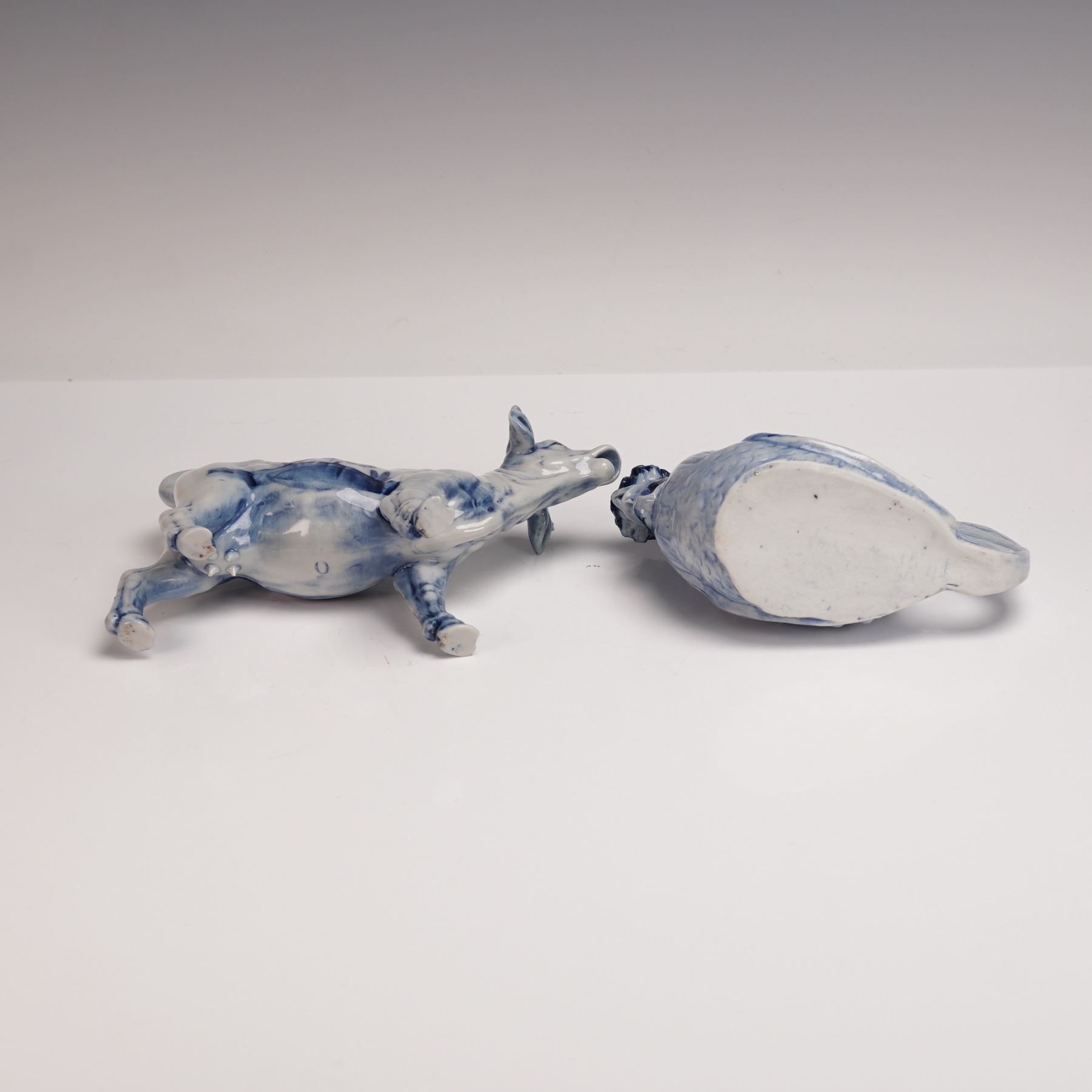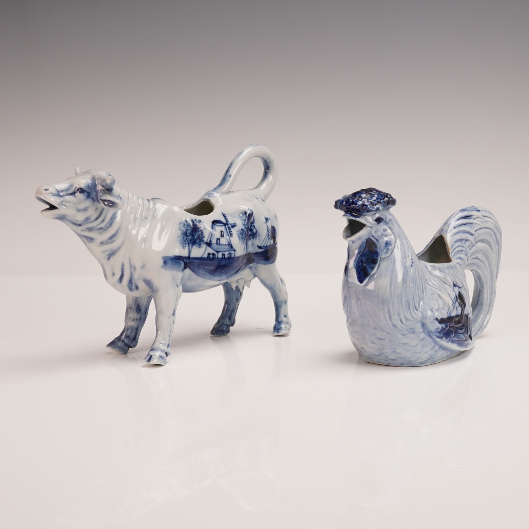 2pc Delft-Style Creamers, Blue and White Ceramic Cow and Rooster