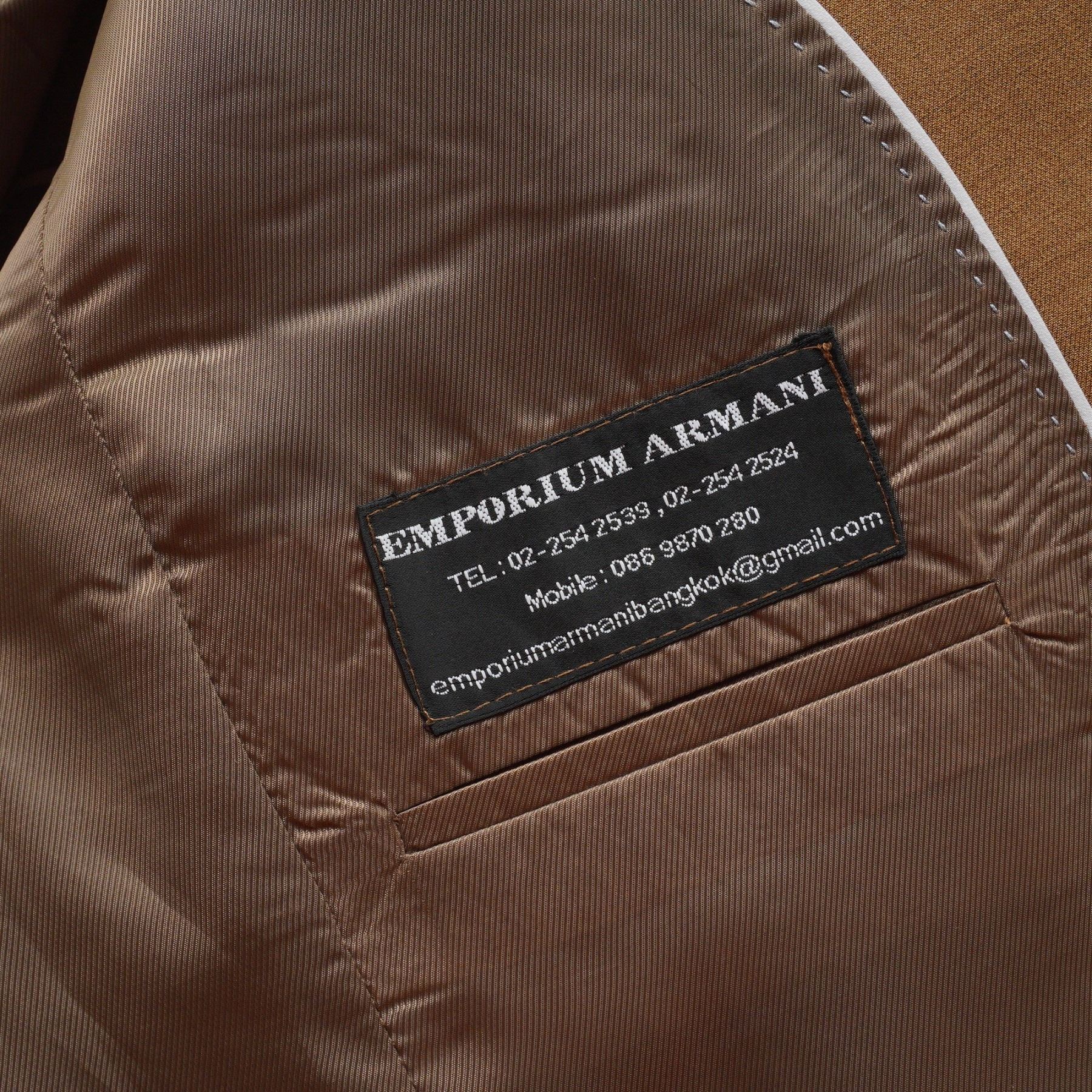 Stylish duo of designer menswear blazers featuring a sleek Emporio Armani brown wool blazer and a Zara Man linen blazer in a subtle gray camouflage pattern. The Armani jacket exudes timeless sophistication with a structured silhouette, notch lapels, and classic pocket detailing, lined in satin with a custom Emporium Armani interior label. The Zara Man blazer offers a contemporary contrast with its lightweight linen blend, single-button closure, and modern textured pattern that embodies casual refinement. Together, these pieces blend high-end tailoring and effortless European flair, perfect for collectors of designer fashion or for elevating any wardrobe with distinctive versatility. Sizes: M-L.