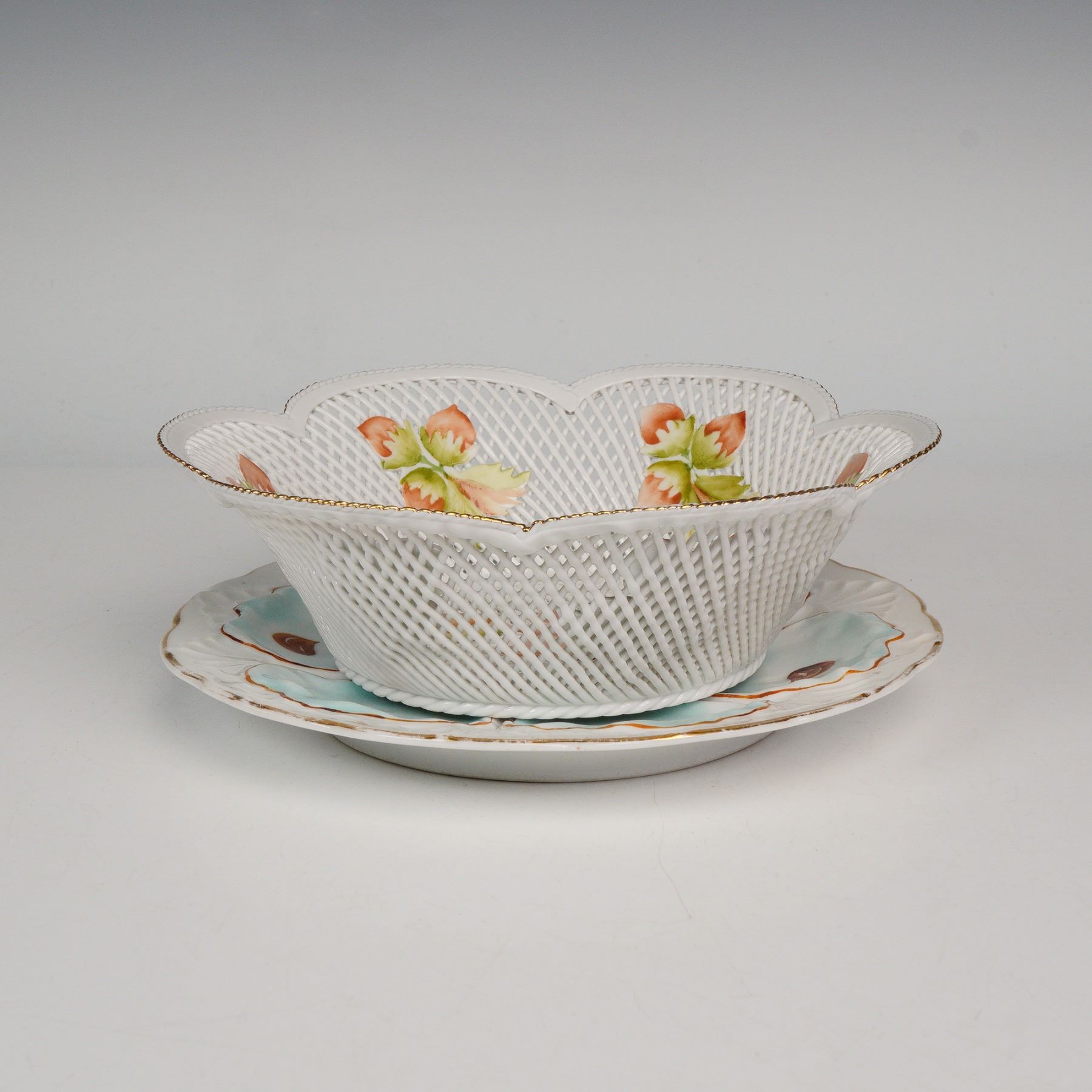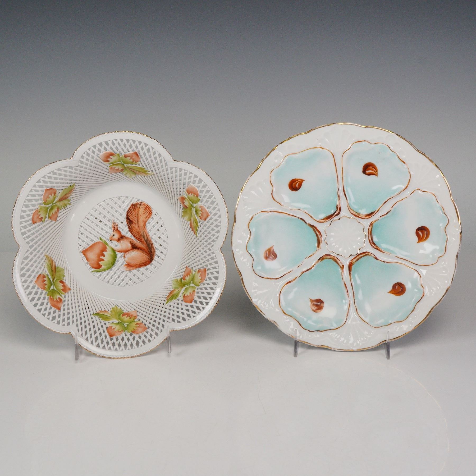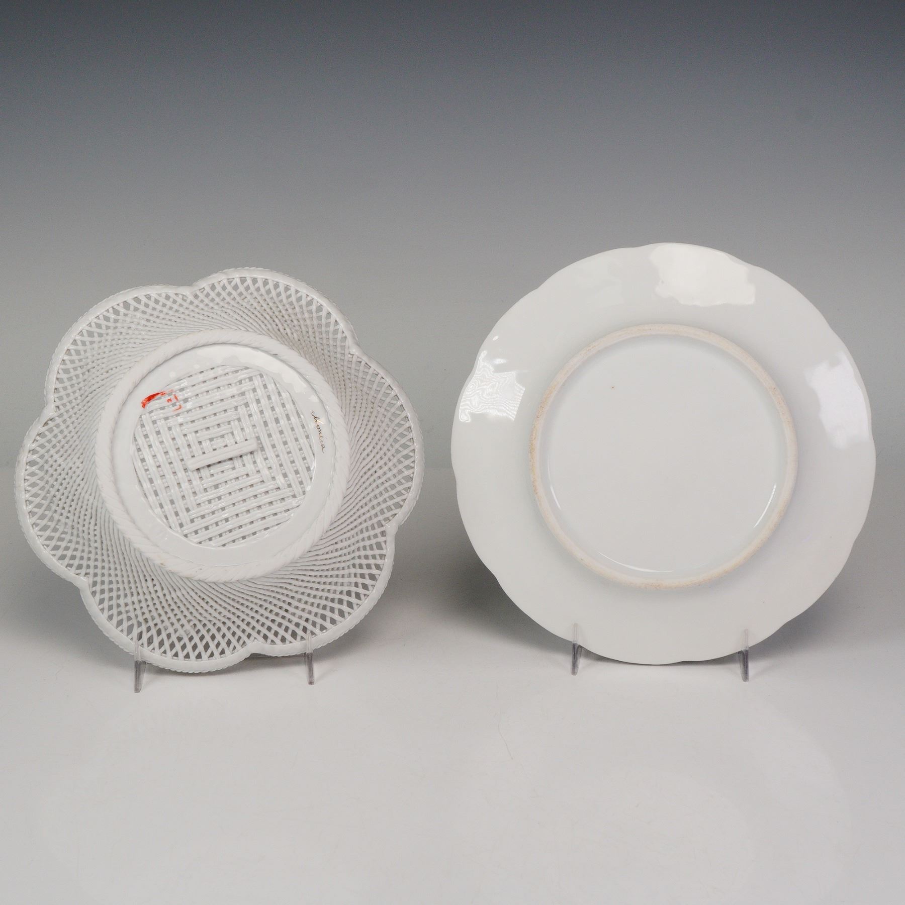2pc French Porcelain Oyster Plate and Romanian Reticulated Bowl