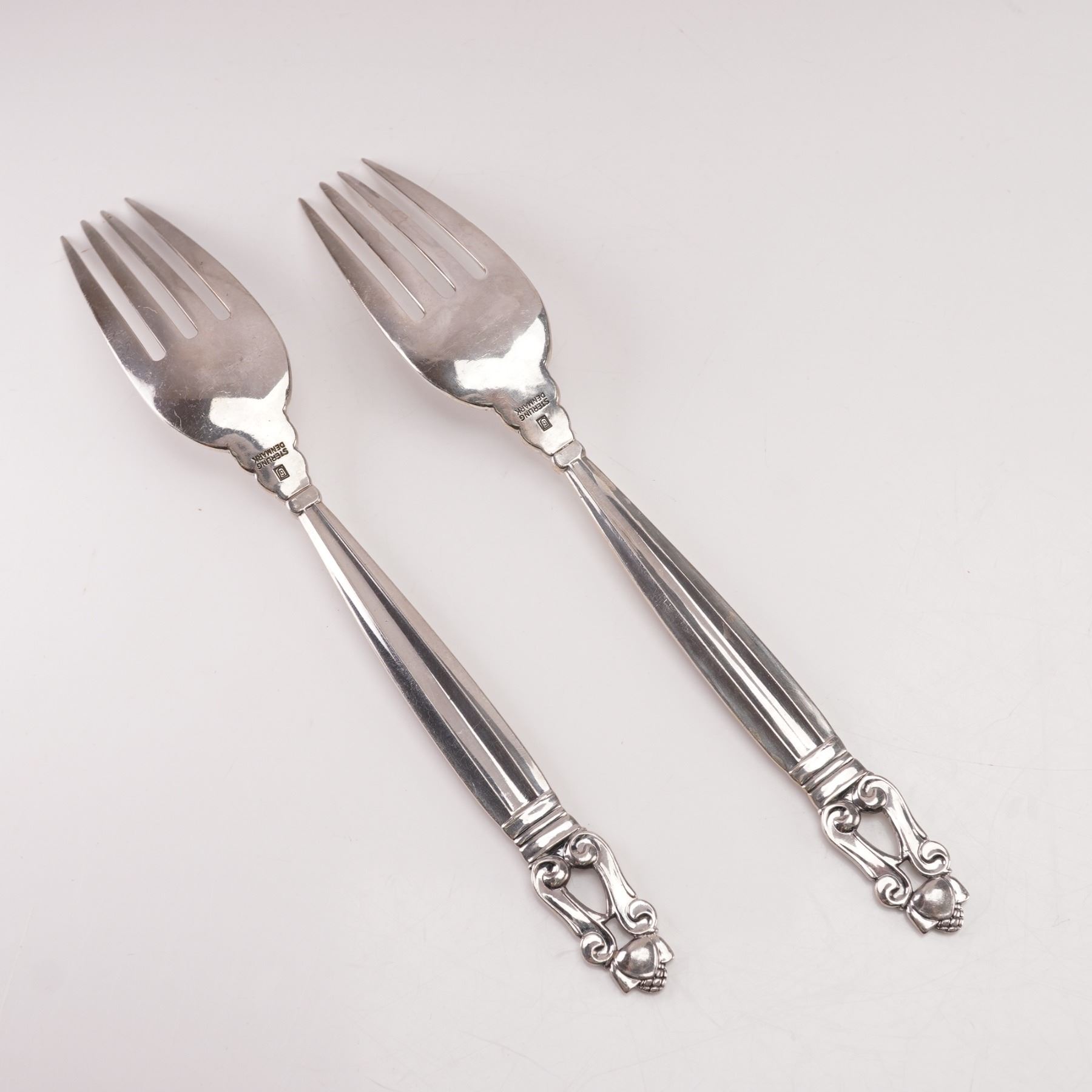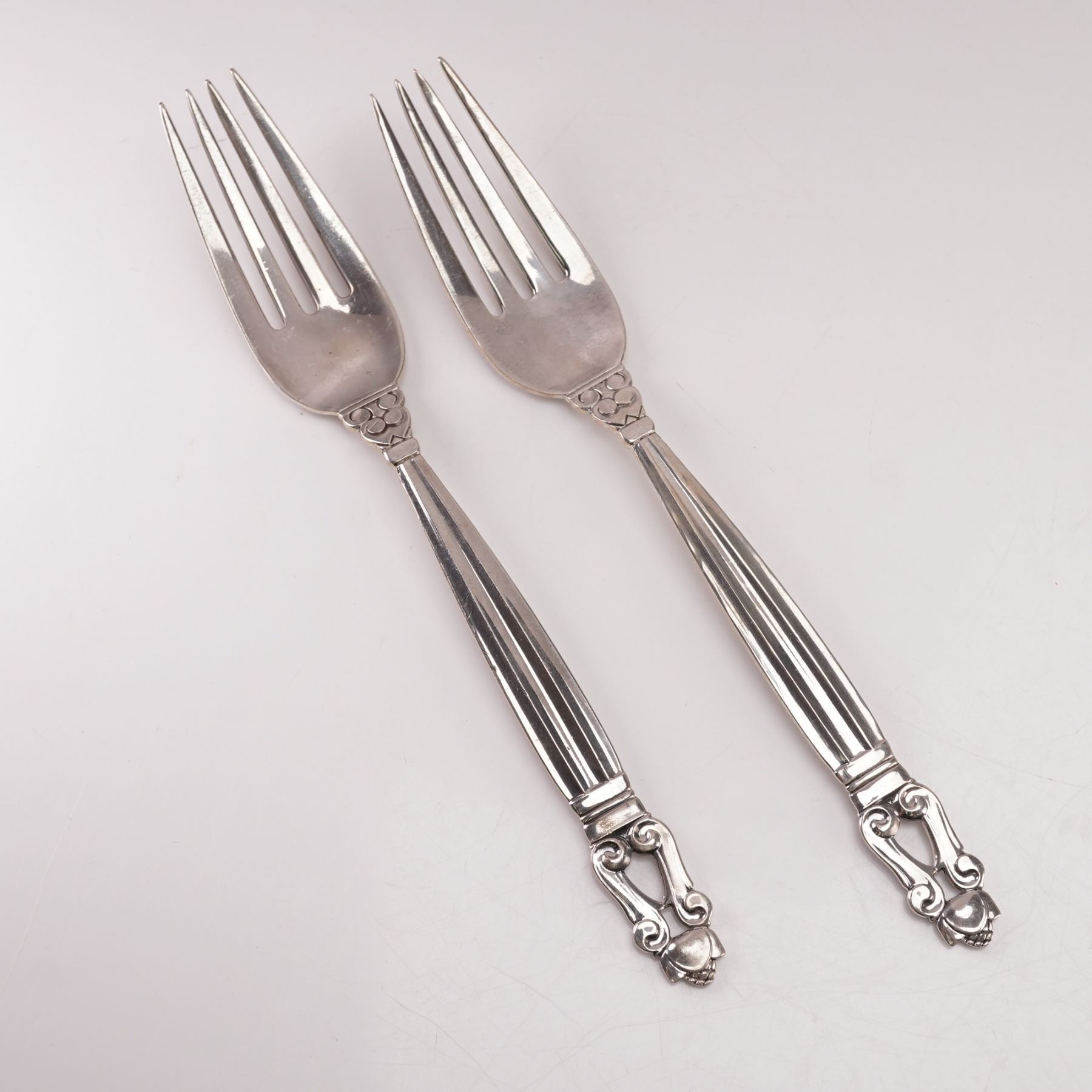 2pc Georg Jensen Sterling Silver Dinner Forks, Acorn