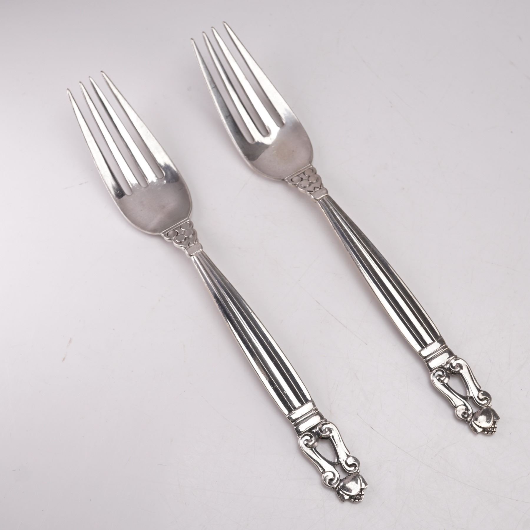2pc Georg Jensen Sterling Silver Dinner Forks, Acorn