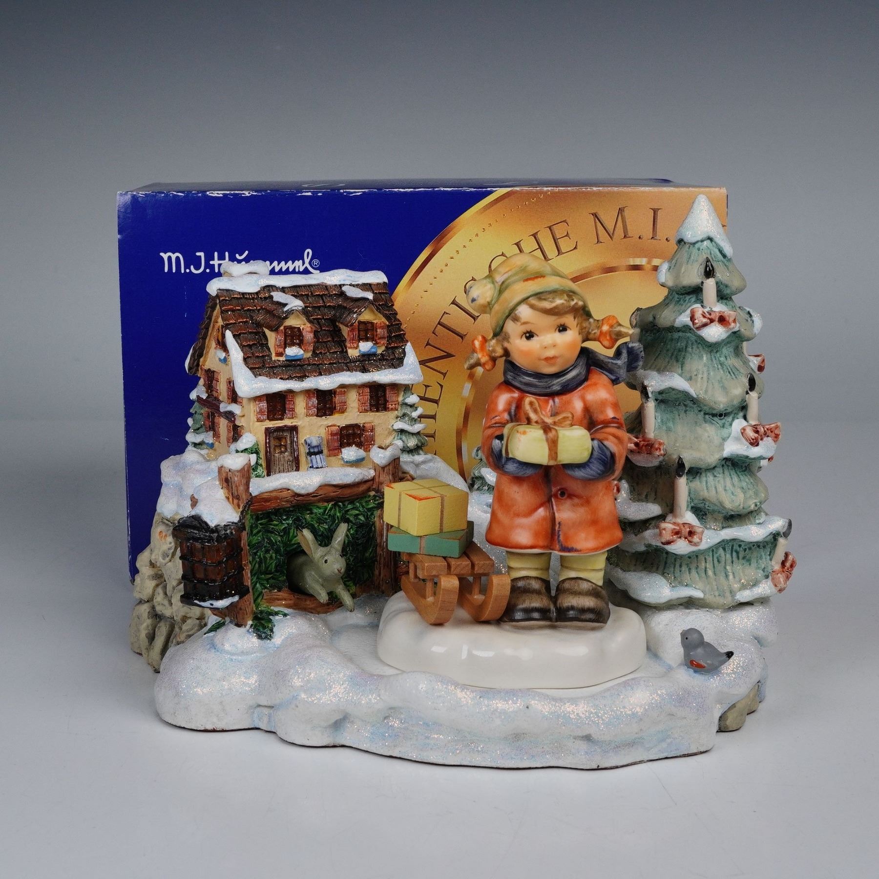 2pc Goebel Hummel Lighted Musical Scene with Figurine, Good Tidings of Joy