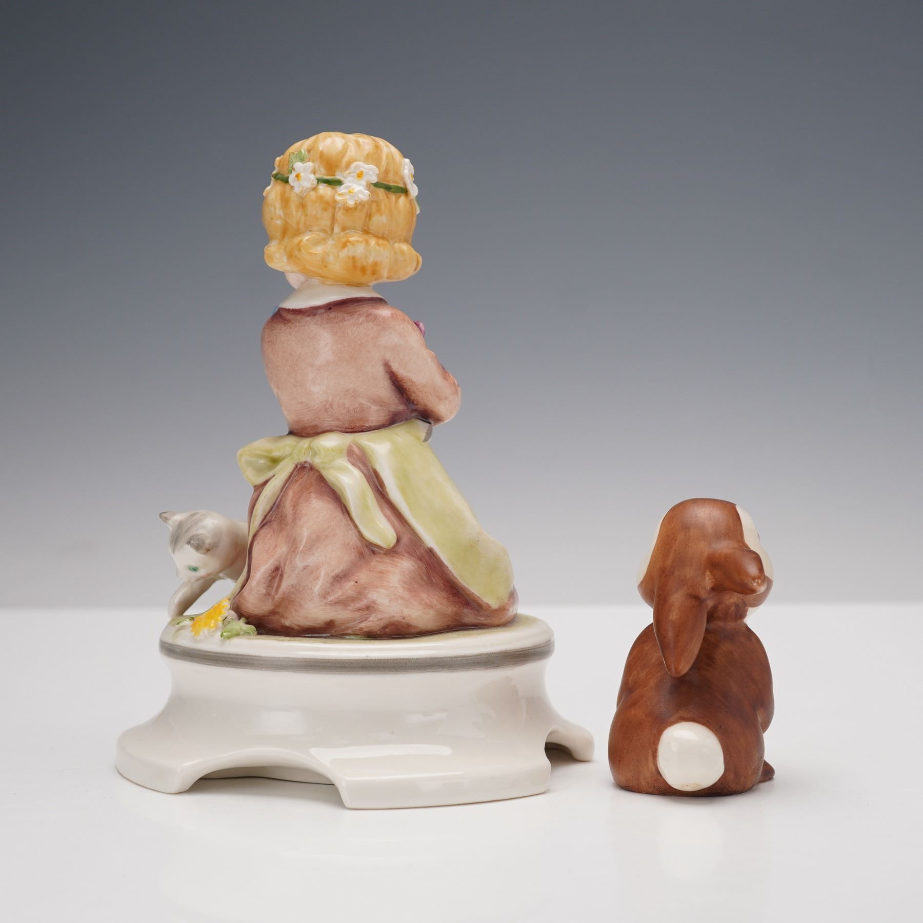 2pc Goebel Porcelain Girl and Animals Figurines