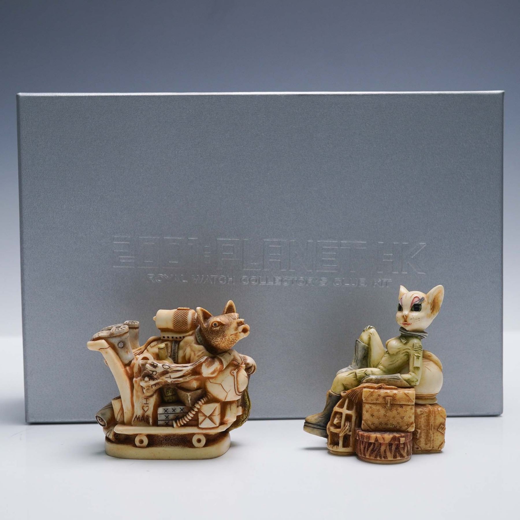 2pc Harmony Kingdom Figurines, Wolfie in Space & Minx on the Moon