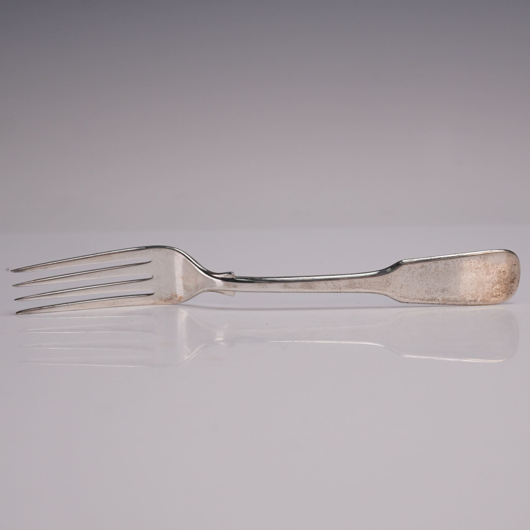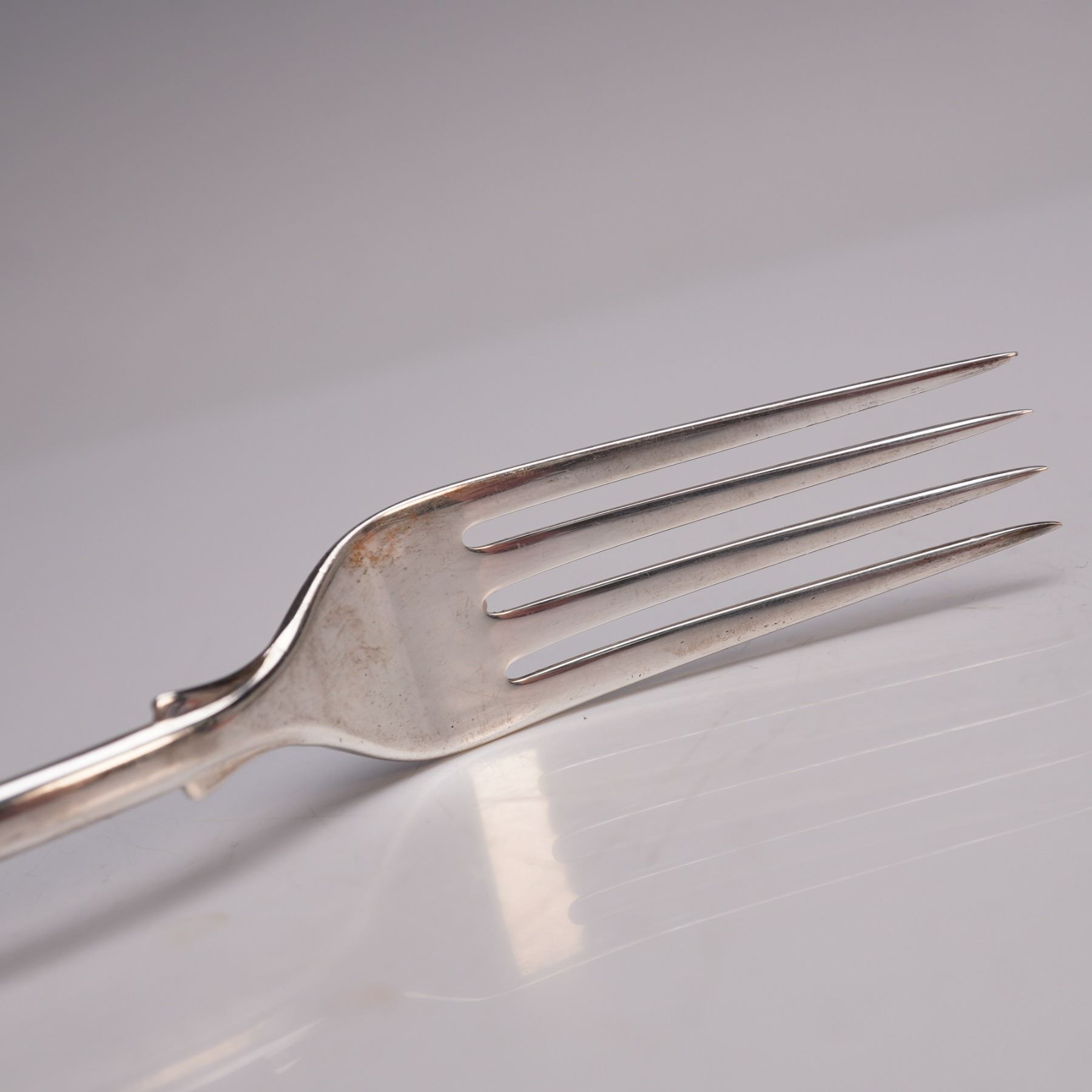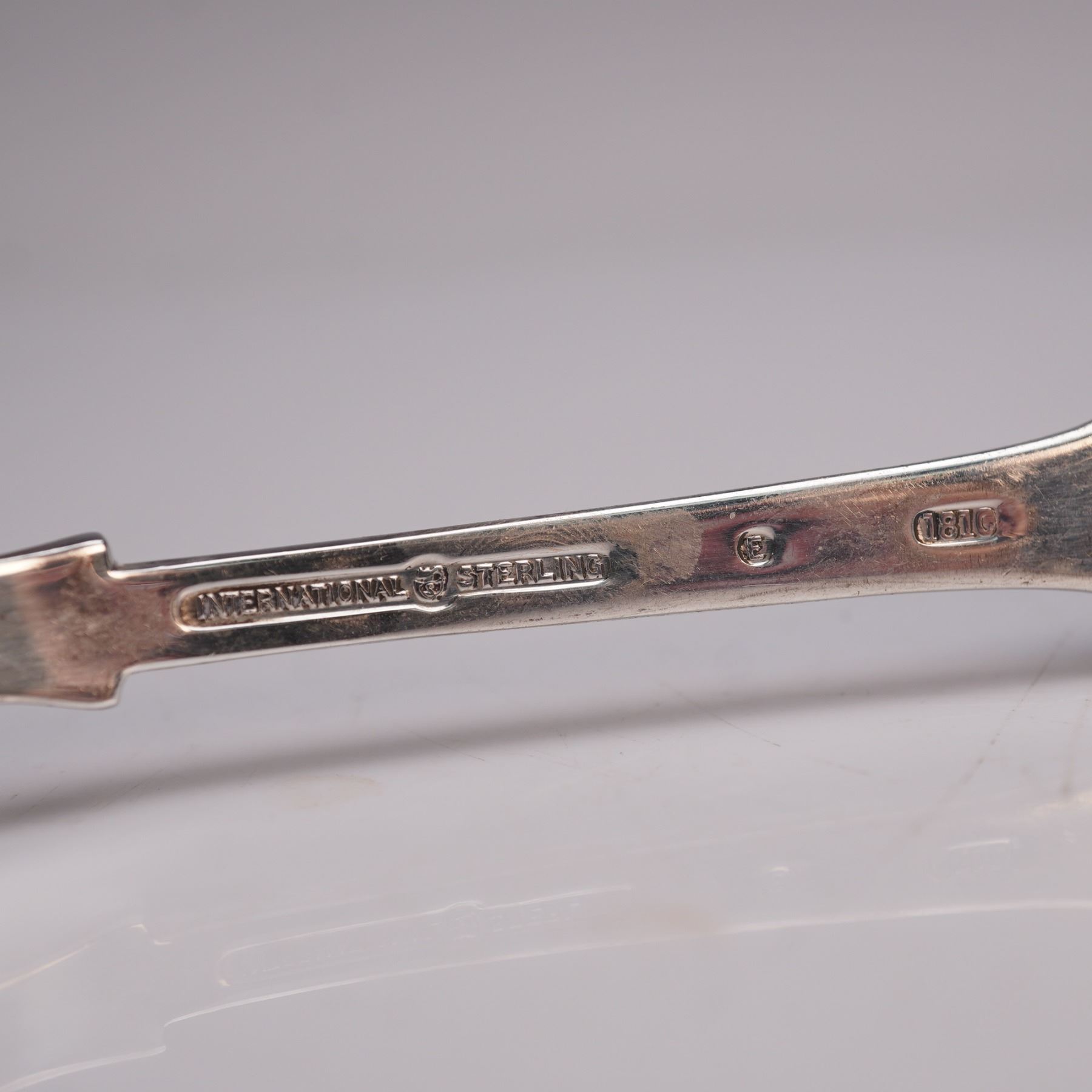 Pair of International sterling silver forks in the 1810 pattern, each with a plain handle and four tines, marked International Sterling with pattern stamp to reverse. Net Silver 3.736 troy oz. Each measures 7.5"L.