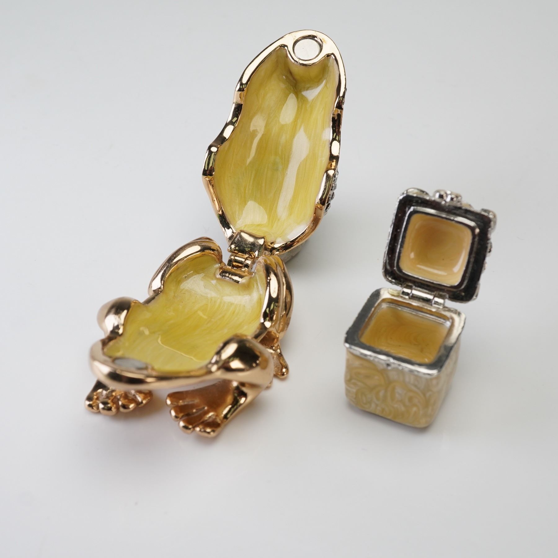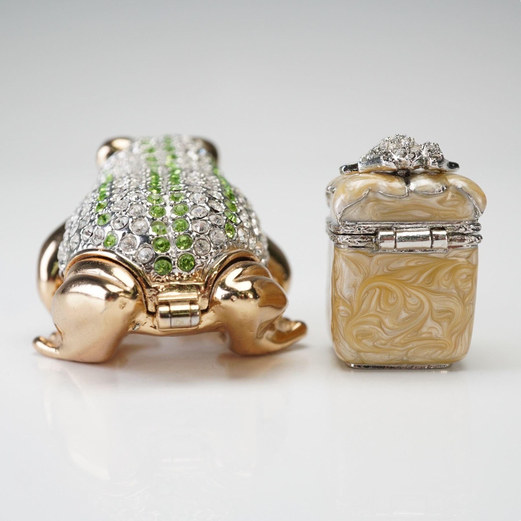2pc Jay Strongwater Mini Frog Trinket Box & Unmarked Enamel Frog Box