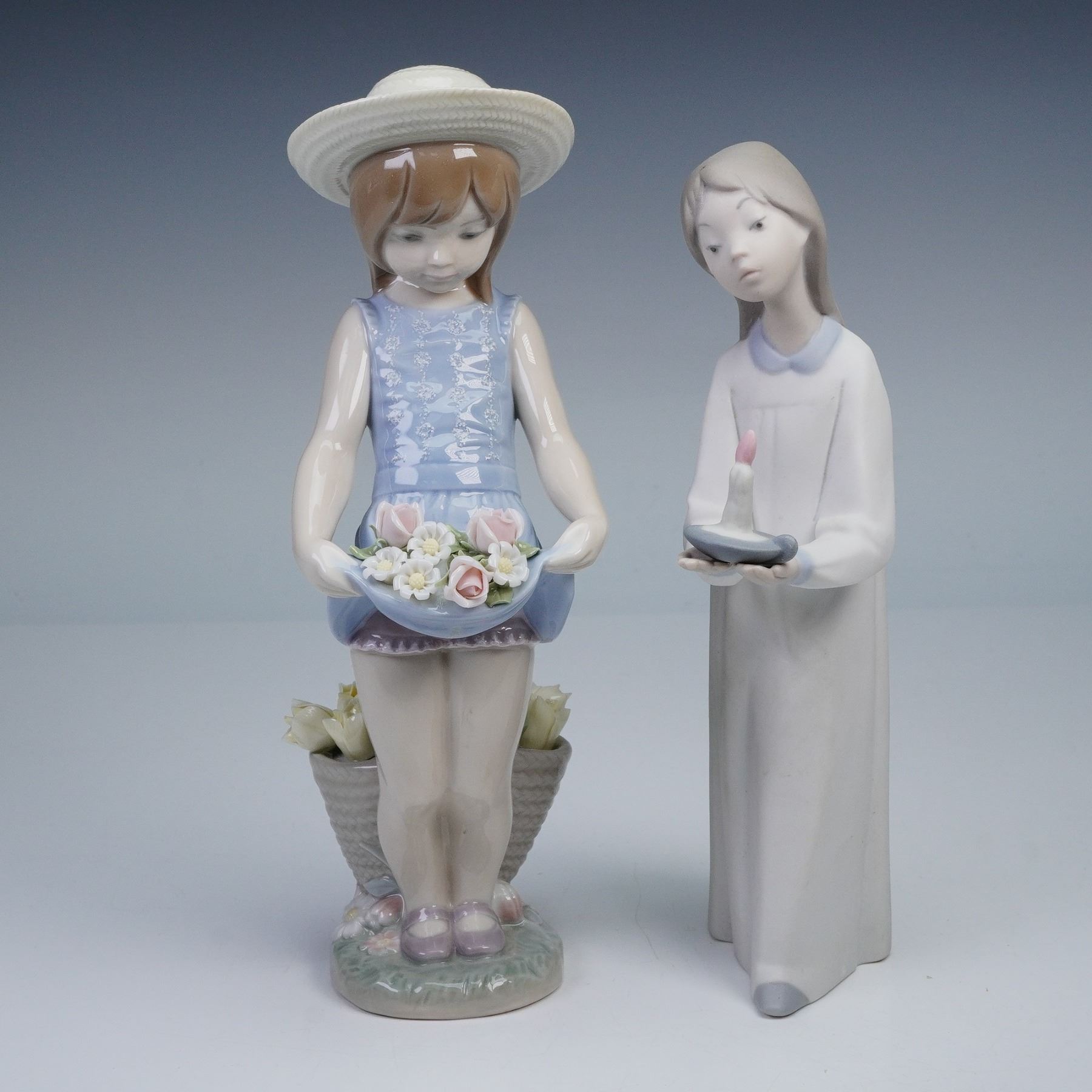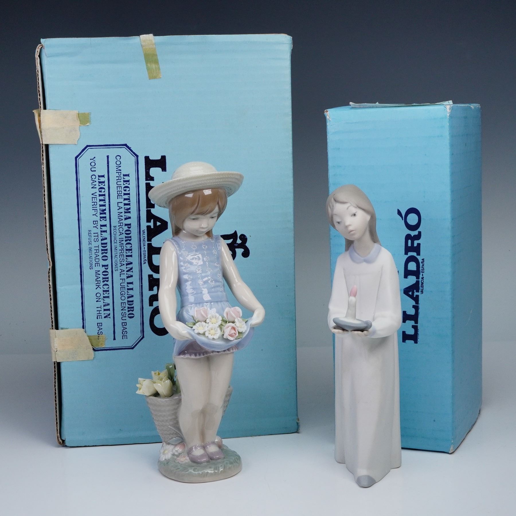 2pc Lladro Figurines, Girl with Candle 01014868, and My Flowers 01001284