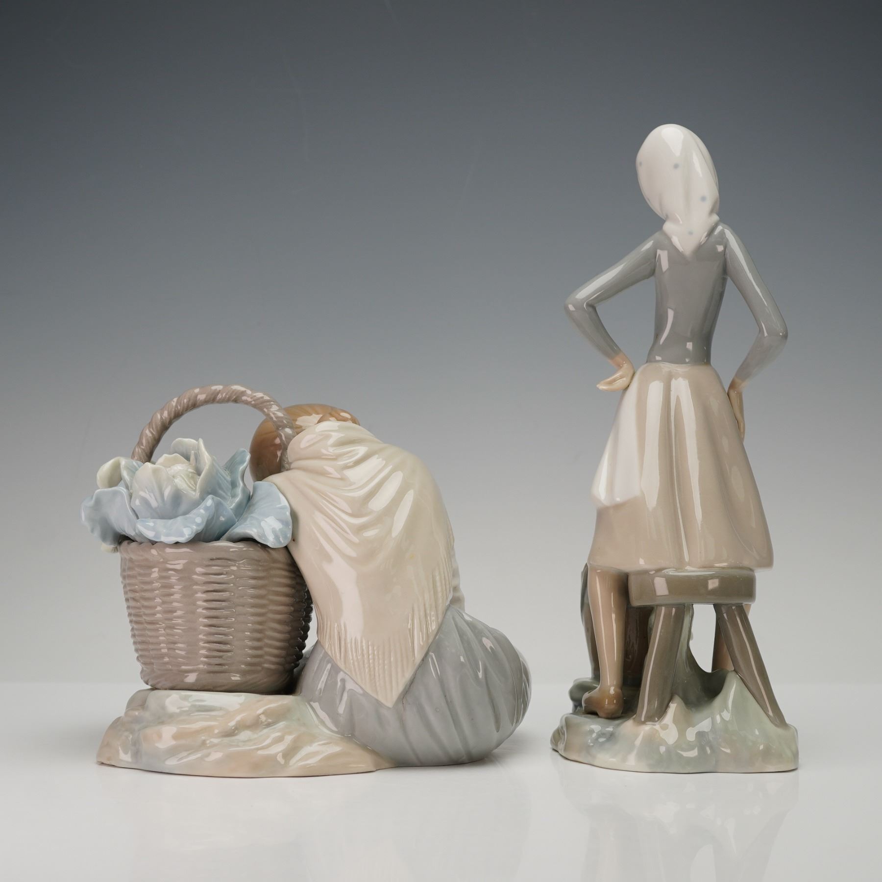 2pc Lladro Figurines, Green Grocer & Girl with Milk Pail