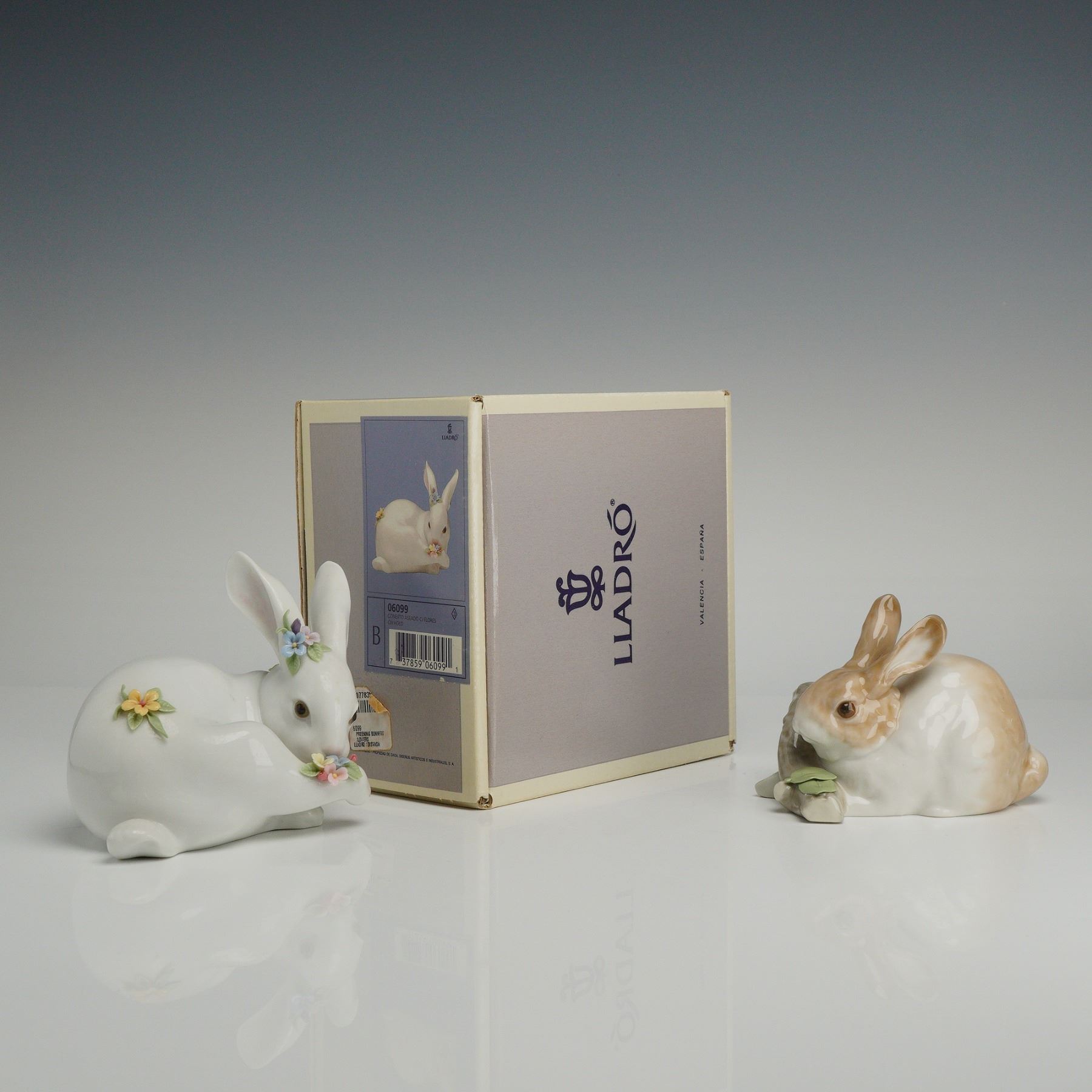 2pc Lladro Figurines, Preening Bunny 1006099 & Rabbit Eating 1004772
