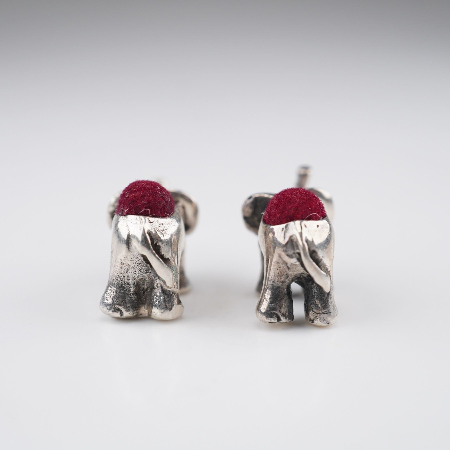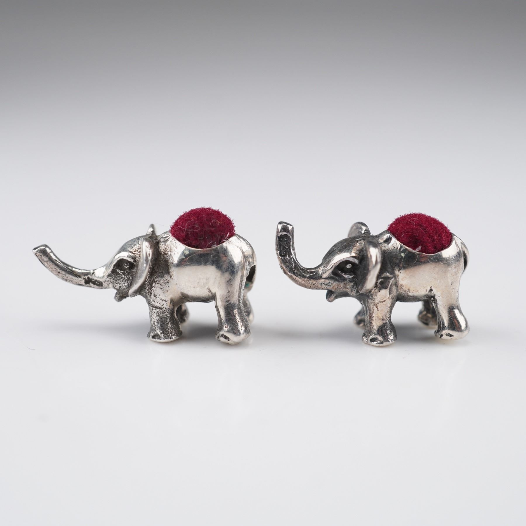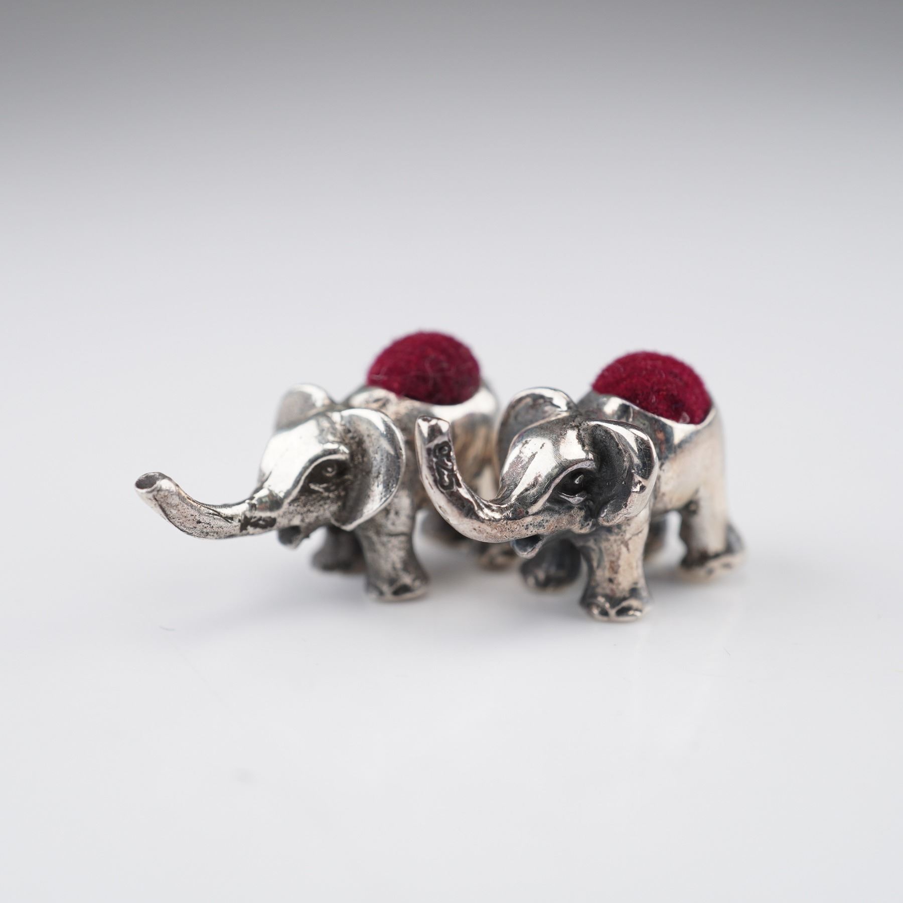 2pc Miniature Elephant Sterling Silver Pin Cushions