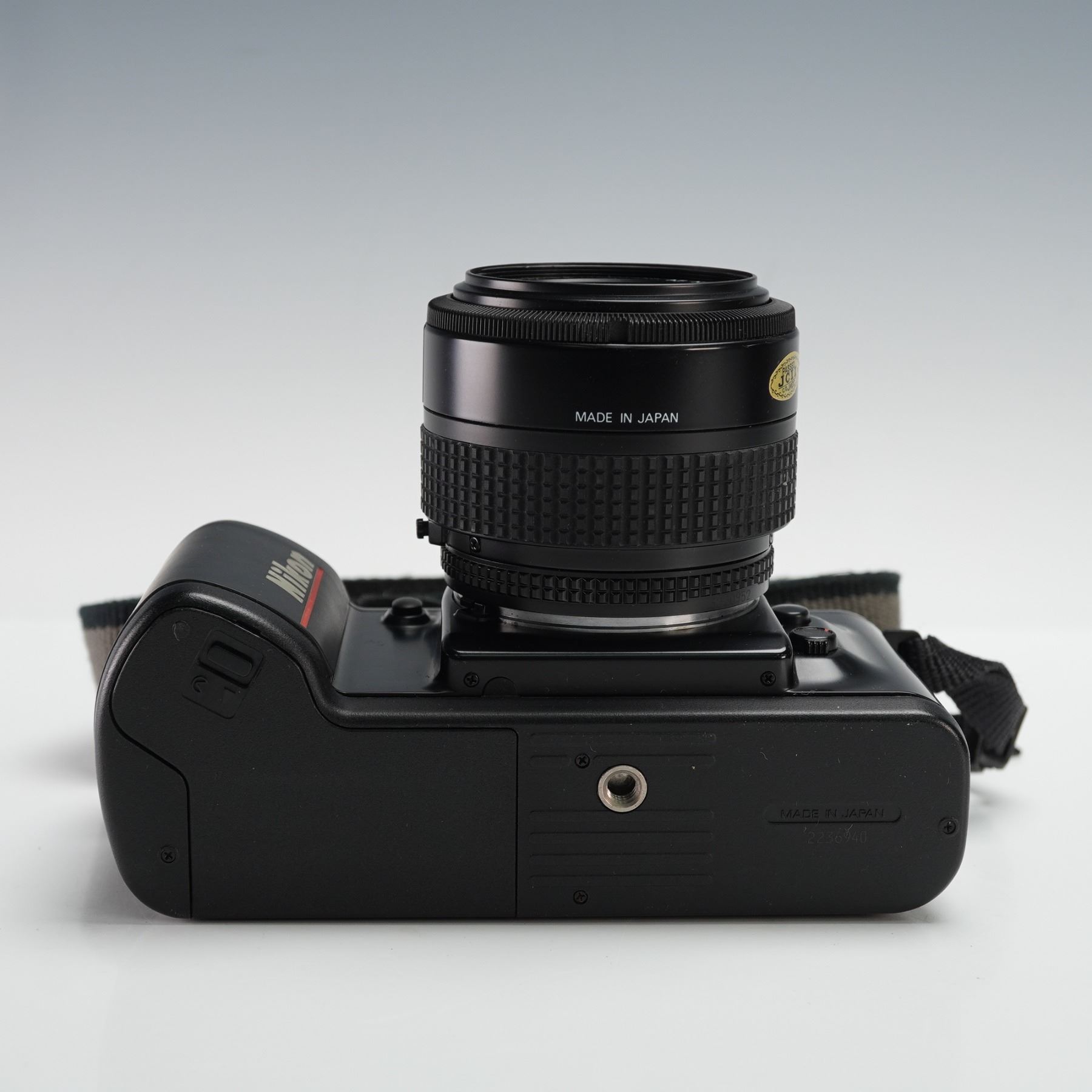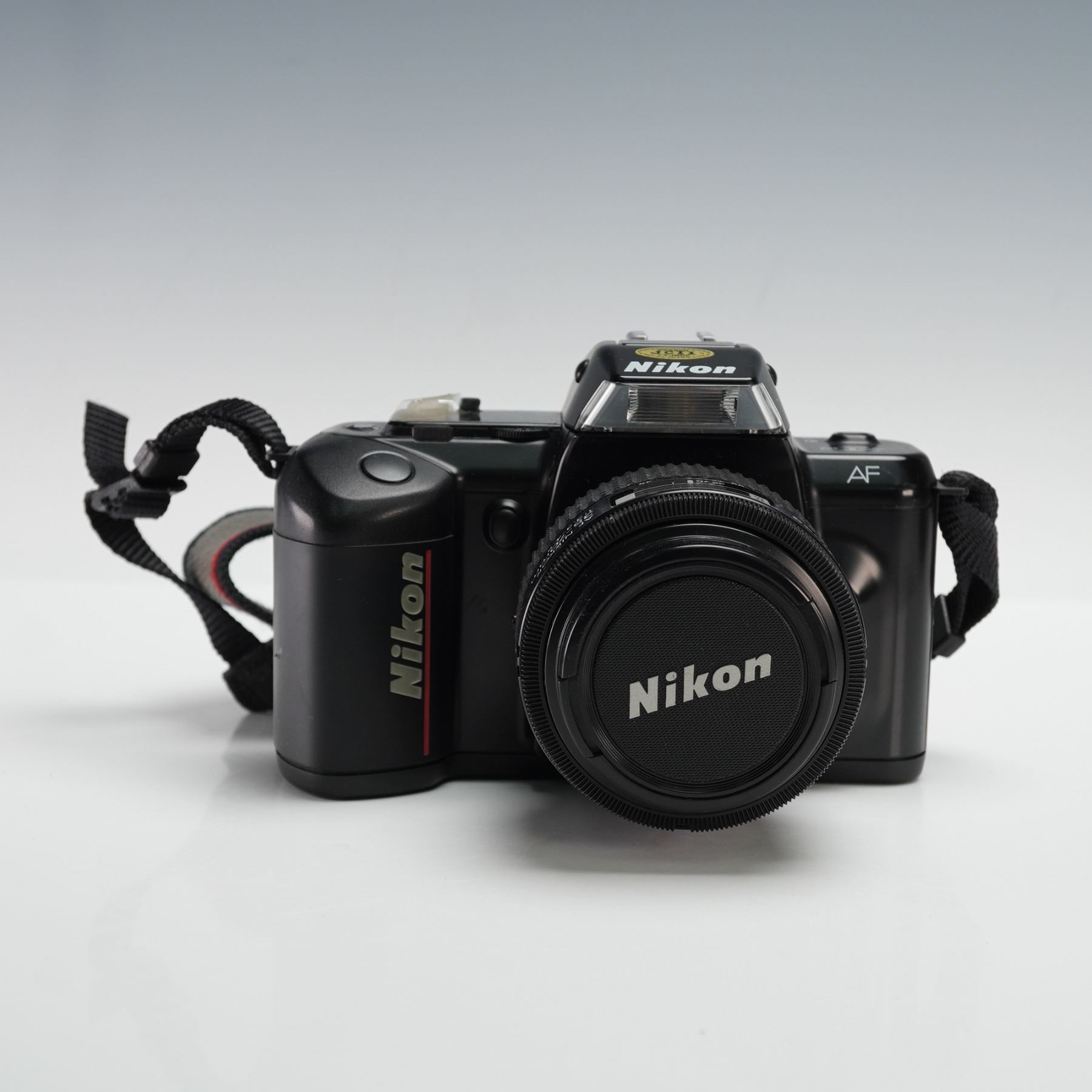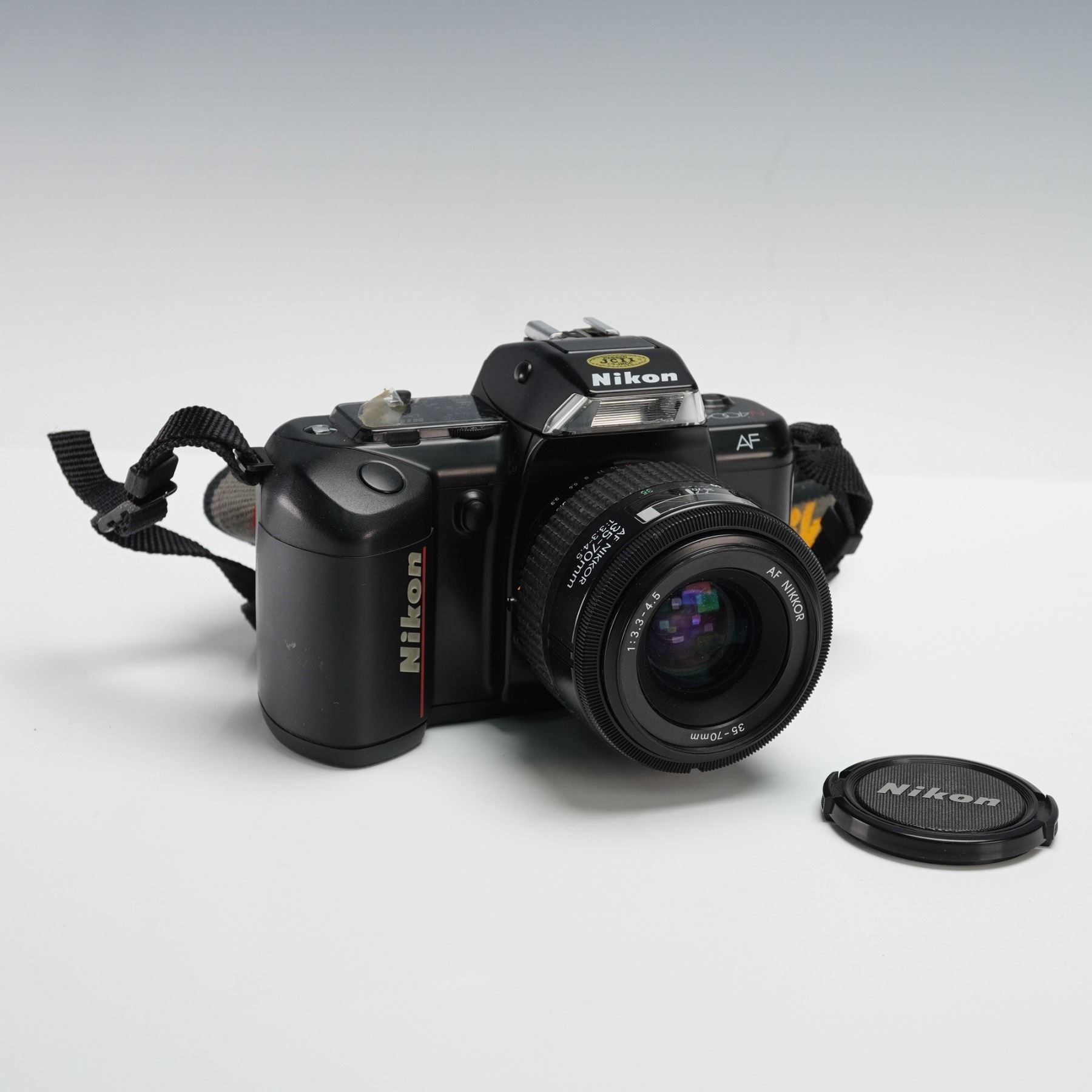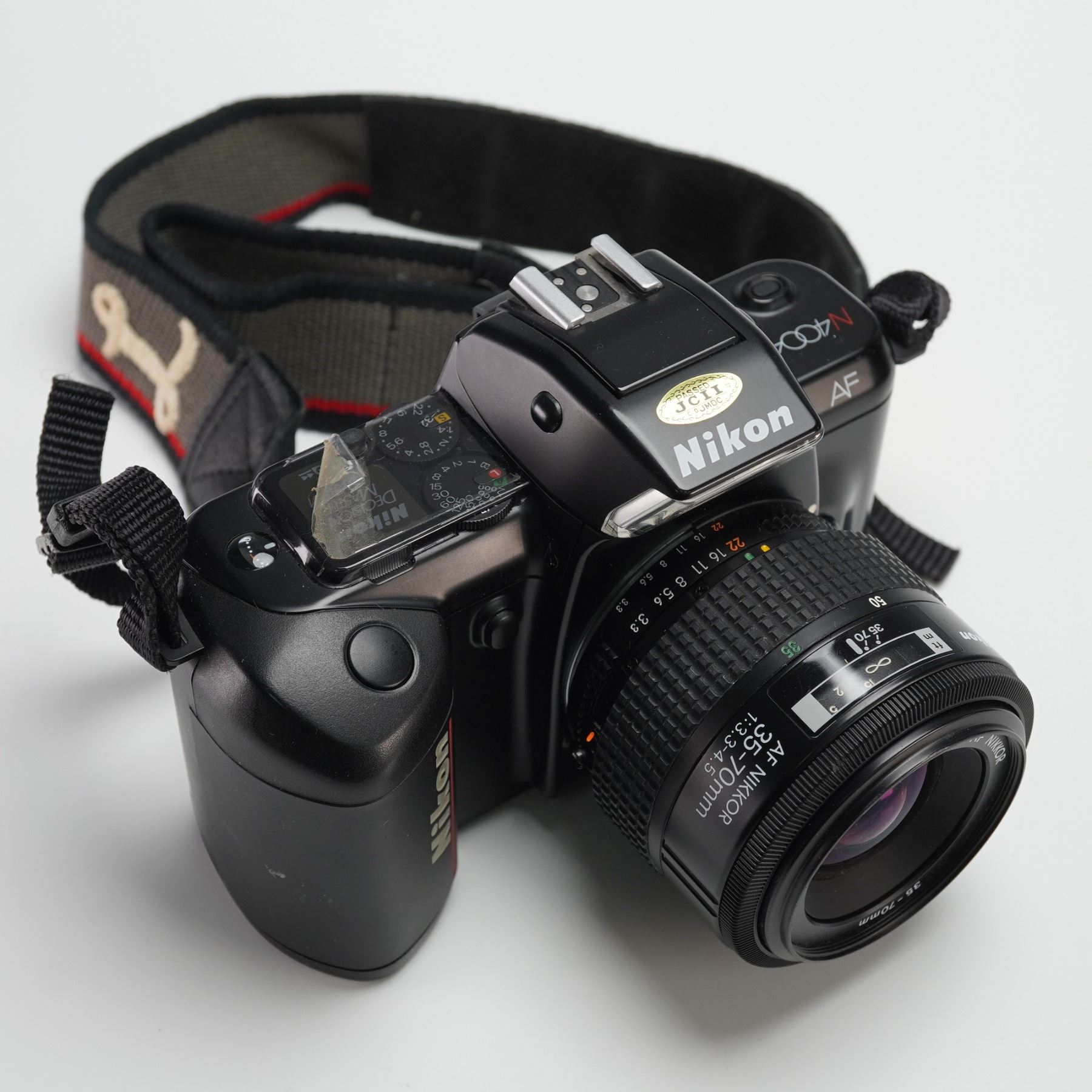 Nikon N4004 autofocus 35mm single-lens reflex camera with AF Nikkor 35-70mm f/3.3-4.5 zoom lens. Includes Nikon strap, lens cap, and carrying case. Ready to bring a touch of analog charm back to your photography lineup.
