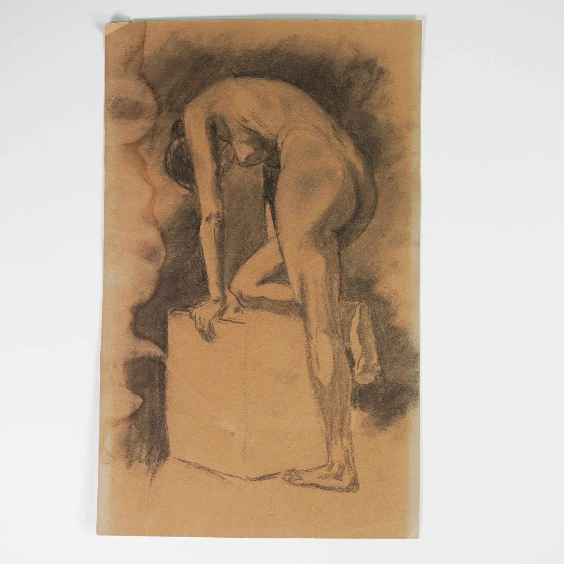 2pc Nude Figure Sketches on Laid and Toned Paper