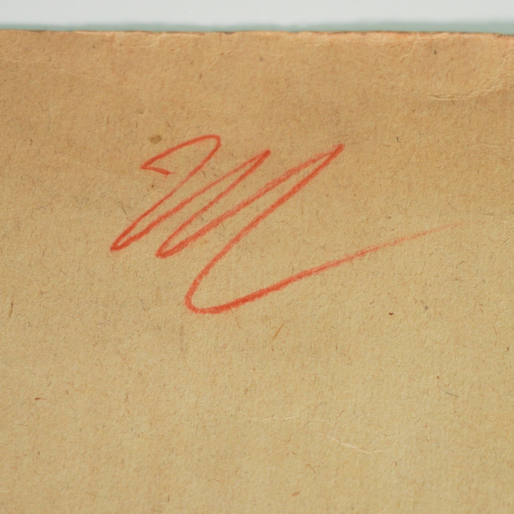 Condition: Age related wear. Charcoal drawing has water staining along the left margin