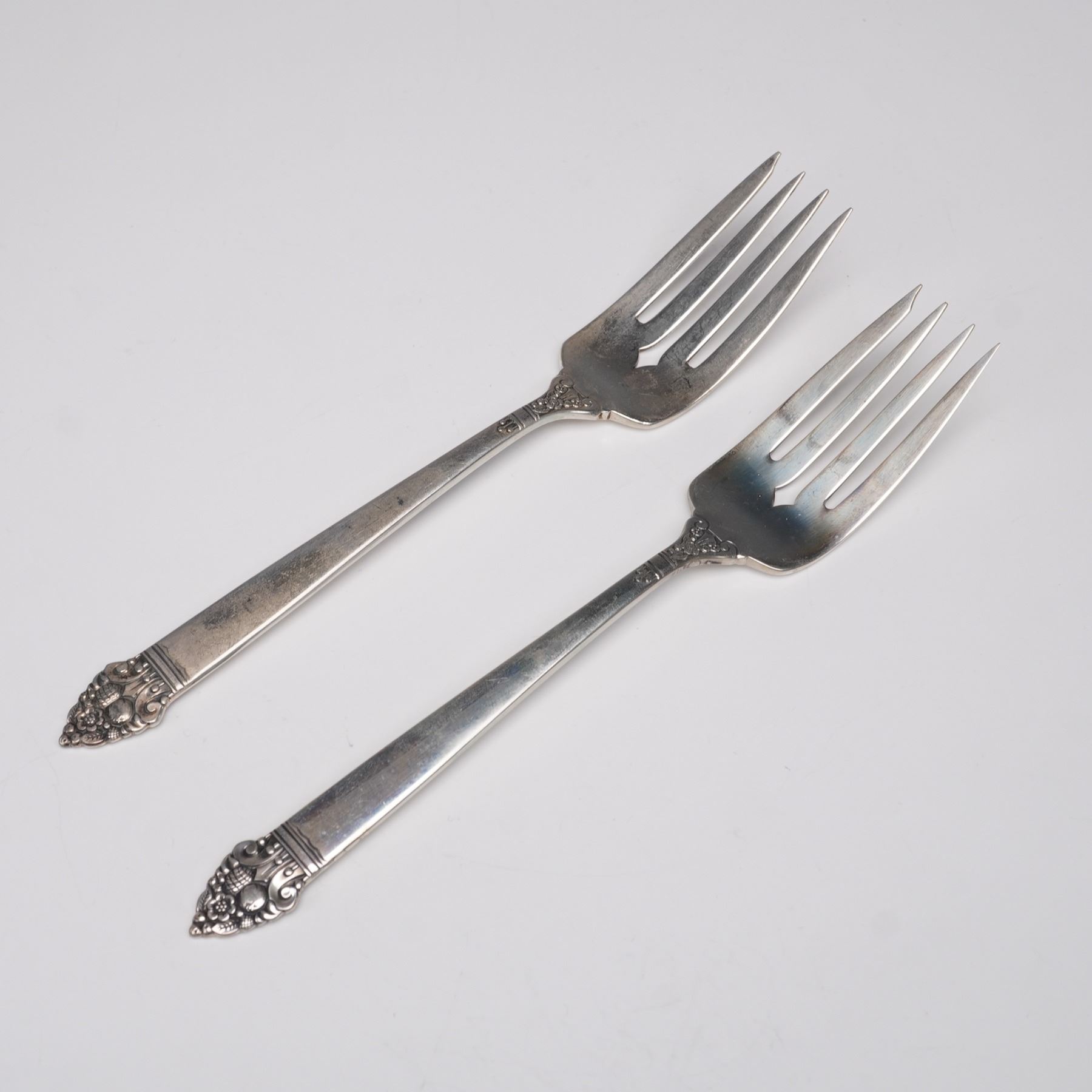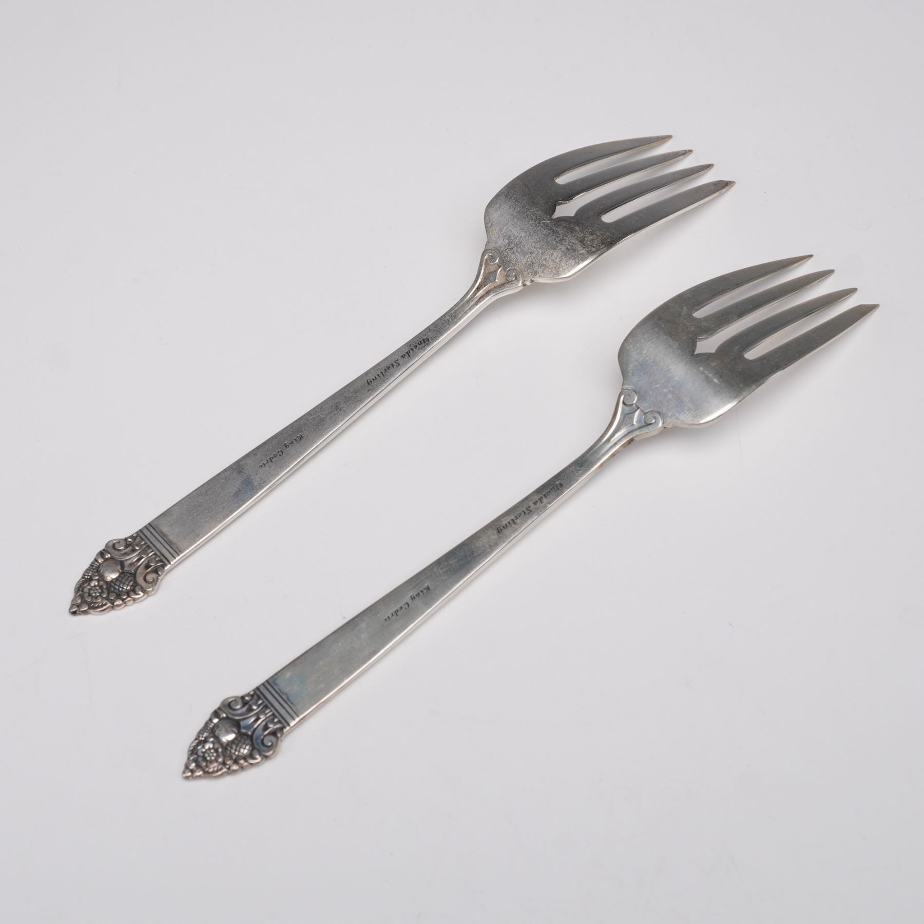 2pc Oneida Sterling Silver Salad Forks, King Cedric