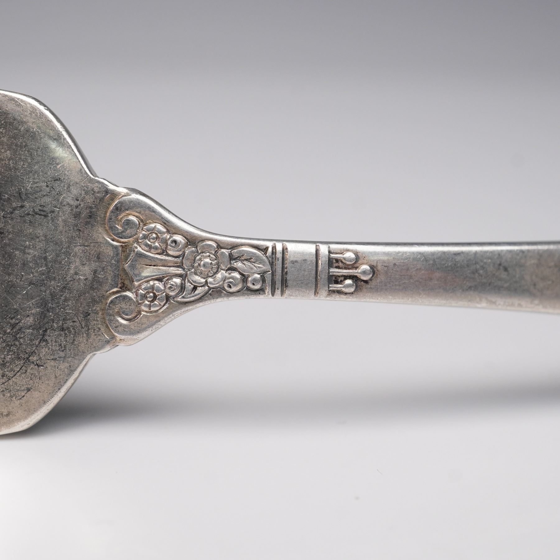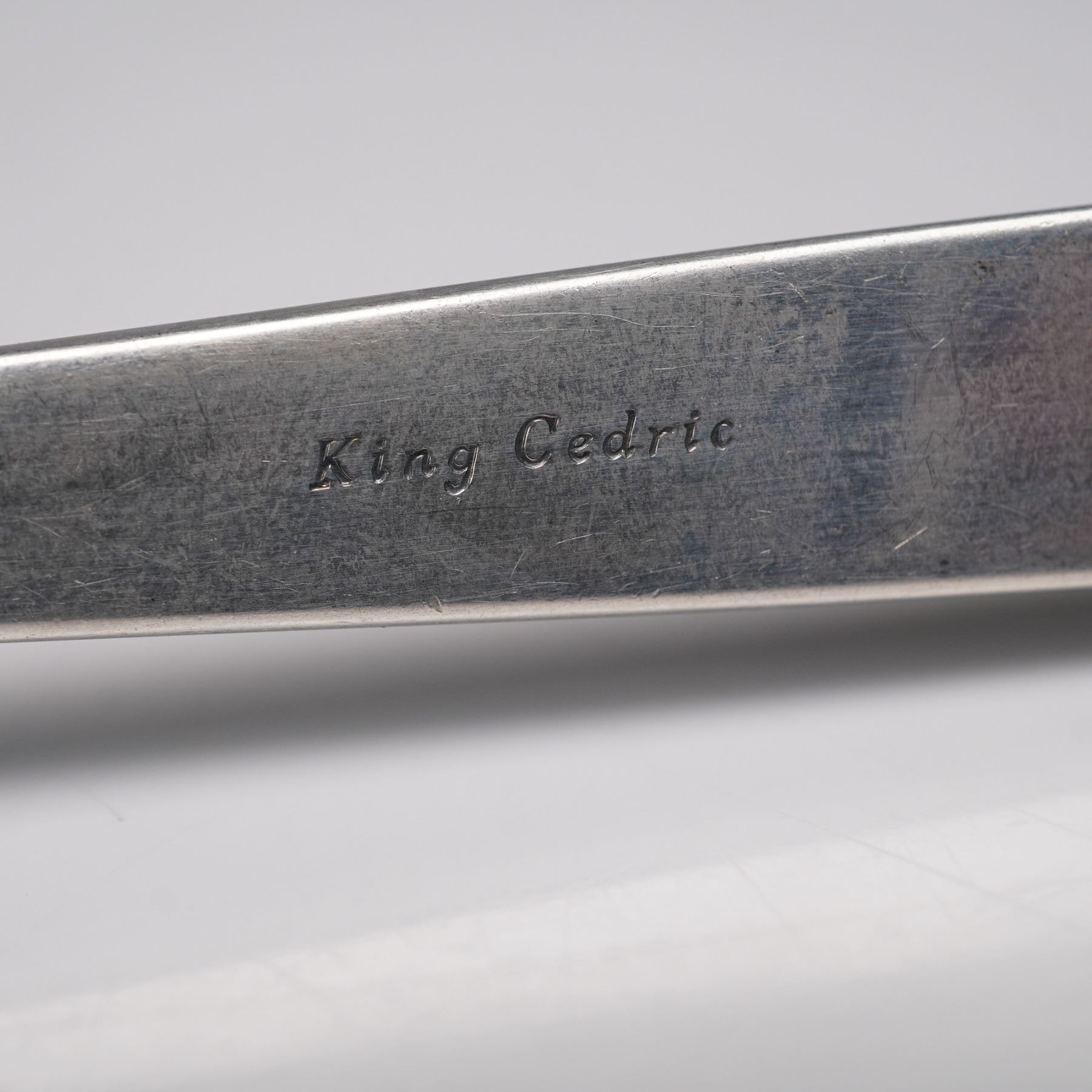 Set of two Oneida sterling silver salad forks in the King Cedric pattern. Each fork features a floral and scroll motif at the handle with a decorative crest at the terminal. The forks are marked "Oneida Sterling" on the reverse. The combined net silver weight of the forks is 2 troy ounces.