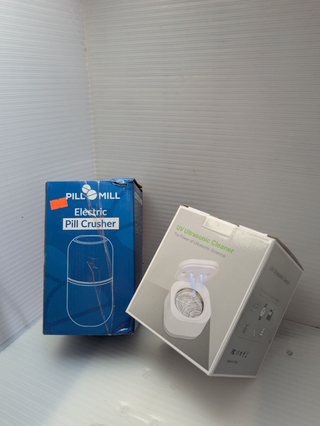 2pc - Pill Mill electric pill crusher & UV ultrasonic cleaner (testing working in boxes)