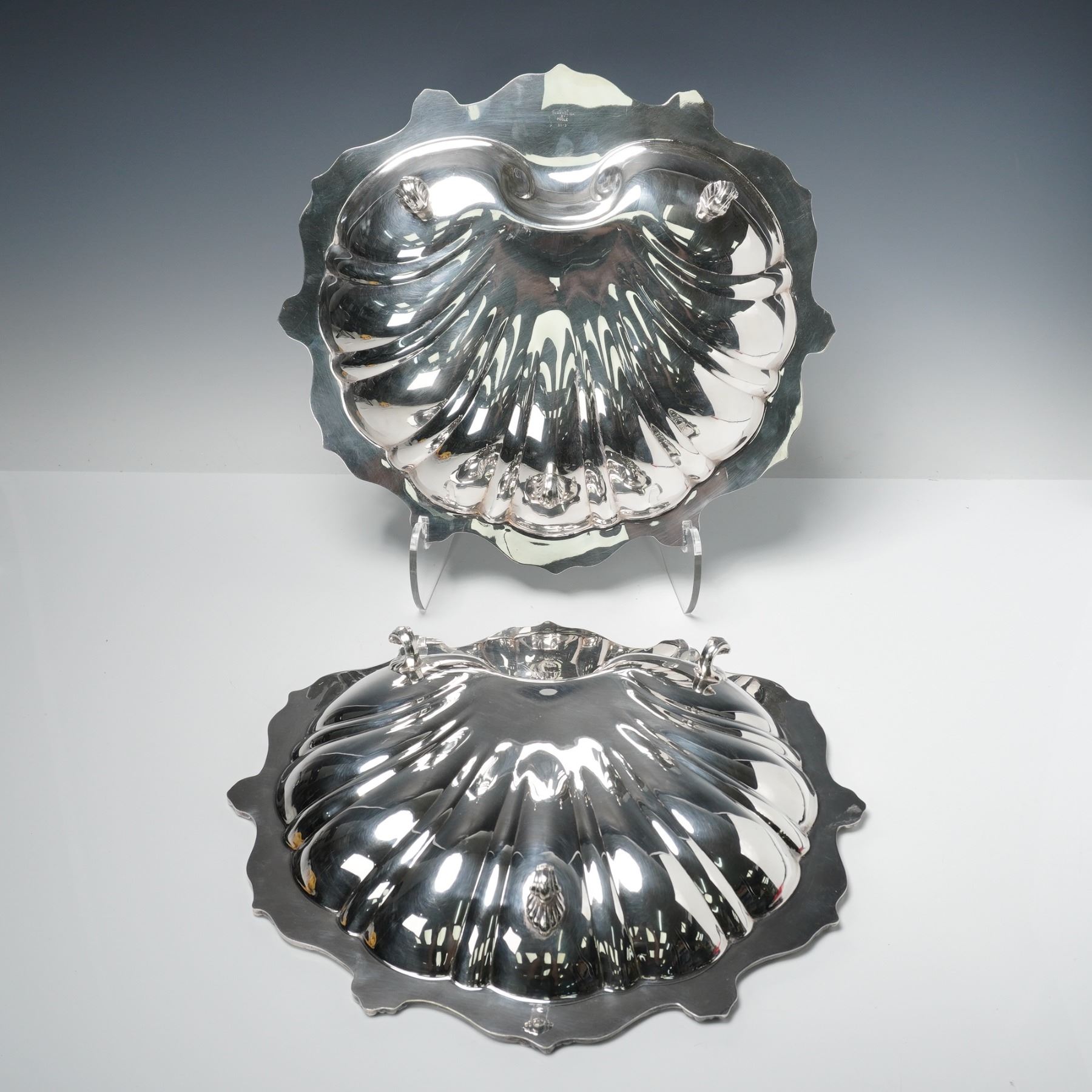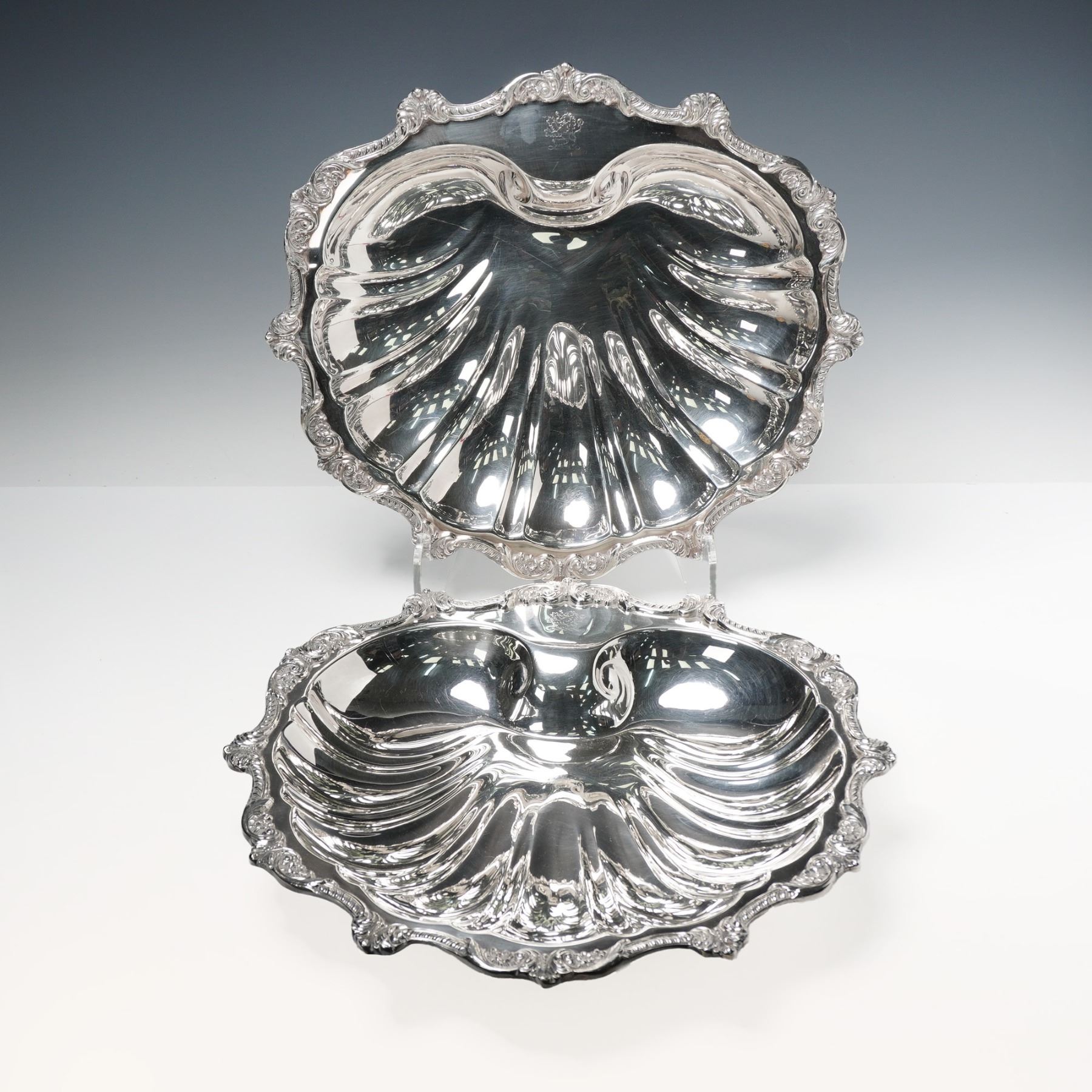 2pc Poole Silverplate Shell Form Serving Bowls, Old English