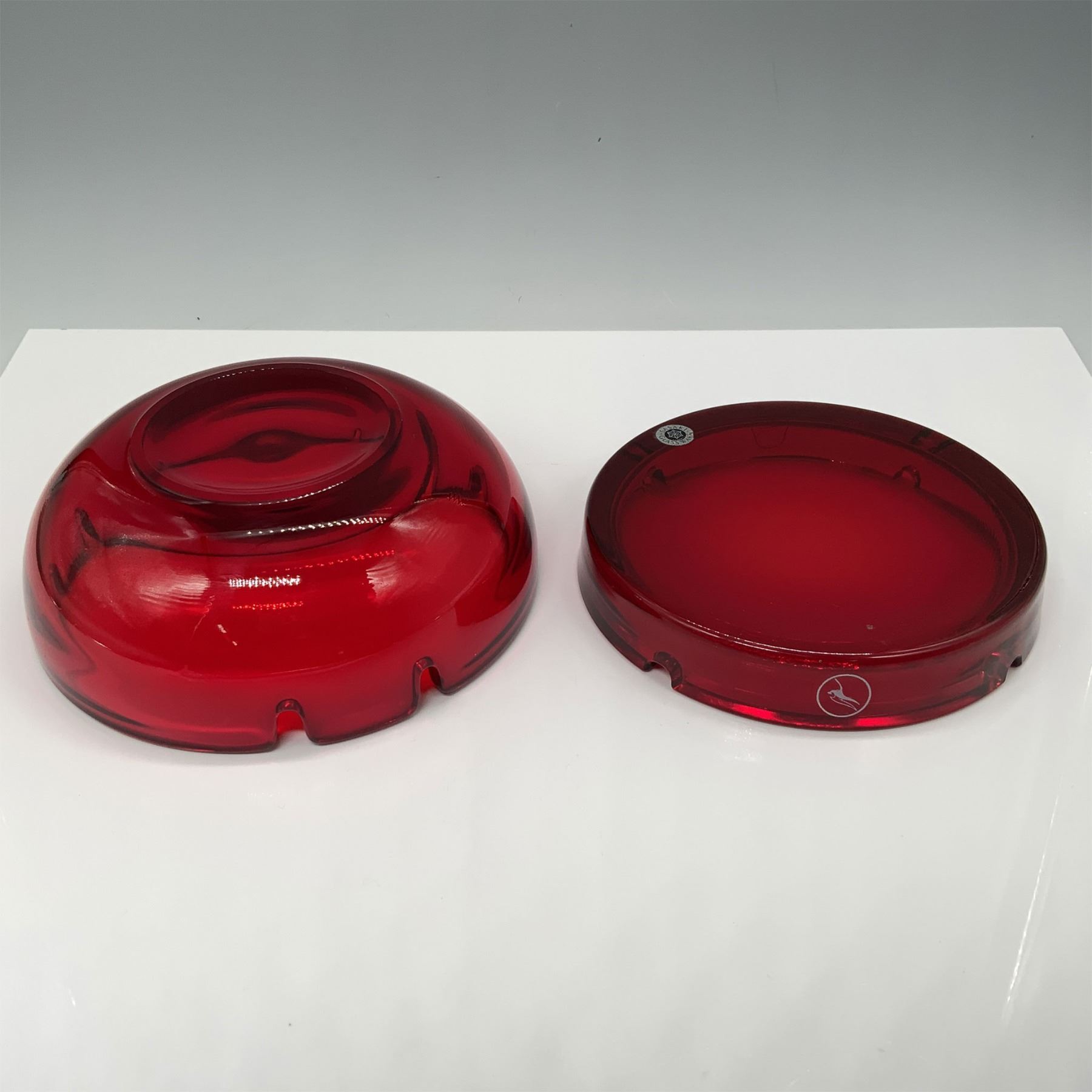 2pc Red Glass Ashtray Set, One Sasaki Marked